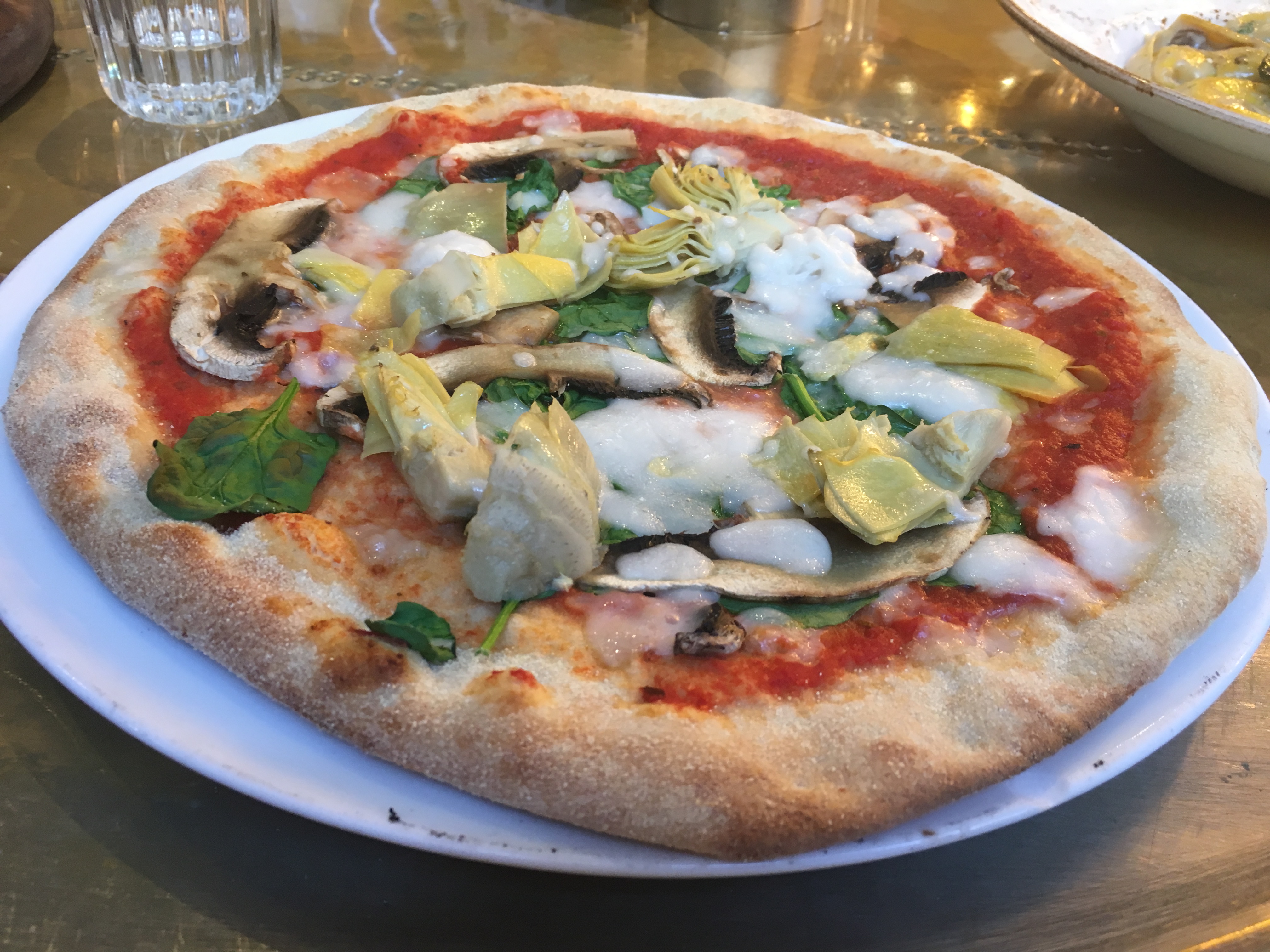 One of the great things about going to Zizzi is how easy it is, you don’t have to feel remotely awkward when asking for their vegan menu as they’re working hard to promote it and are regularly changing/adding things to the menu. To start, we all ordered one vegan garlic bread, which came with at least a whole head of garlic to the happiness of my sister, and another with cheese. They were a very generous size so two were easily shared by the five of us, and everyone equally enjoyed the vegan one. When our mains came, our very enthusiastic waiter offered the non-vegans cheese, adding ‘and it’s vegetarian parmesan’ which was thoughtful and shows again how they are aware of their customers’ different needs.