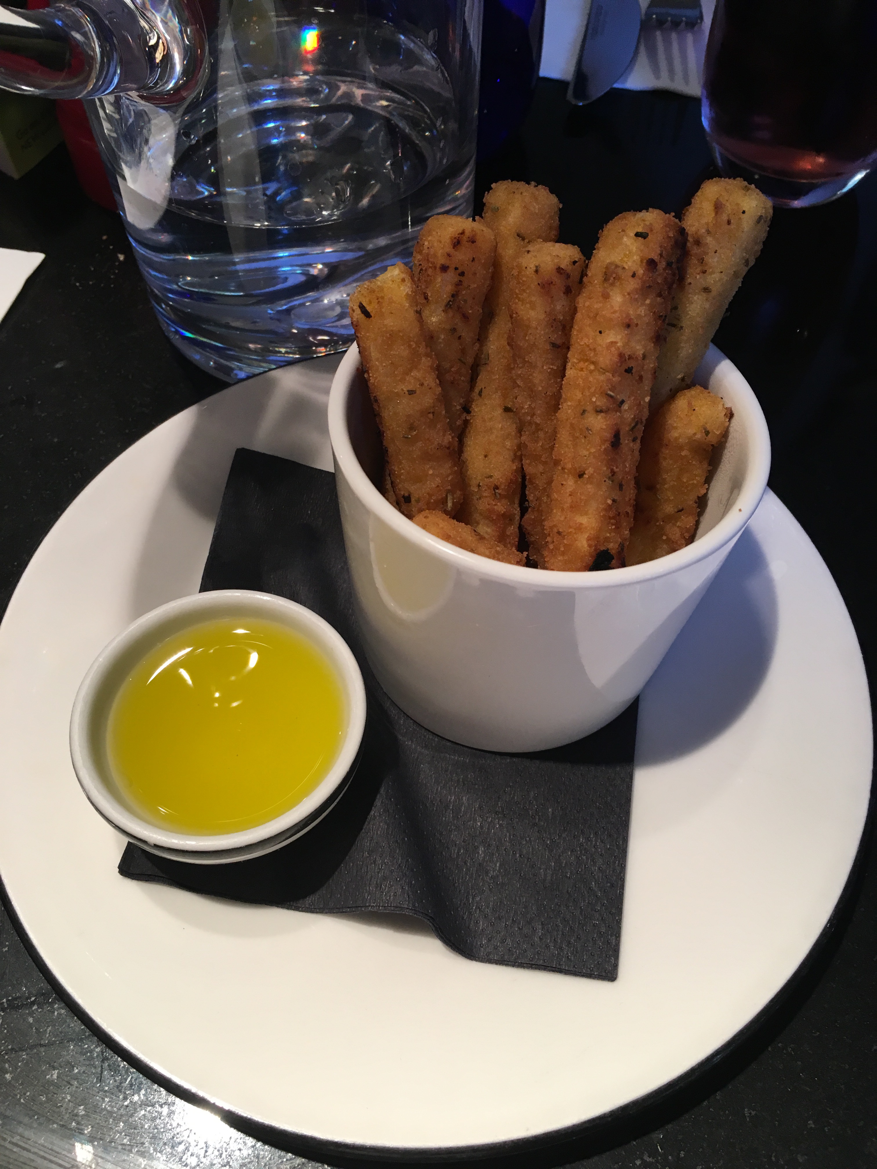Along with our drinks we ordered the polenta chips (no honey-mustard dip for me) and doughballs, but none of it arrived until well after our friends did at around 8pm. It was my first time trying polenta chips and I’d definitely order them again, the portion size was generous as they are quite filling, easily enough for us to share. I’d asked for the garlic butter that usually comes with the doughballs to be swapped out for balsamic vinegar but they brought us out a dish of plain oil instead, which I don’t really love, so I just had a couple of dough balls on their own. I didn’t really mind though, because who doesn’t like bread? All the carbs in our starters kept me at a reasonable level of hunger until our food came.