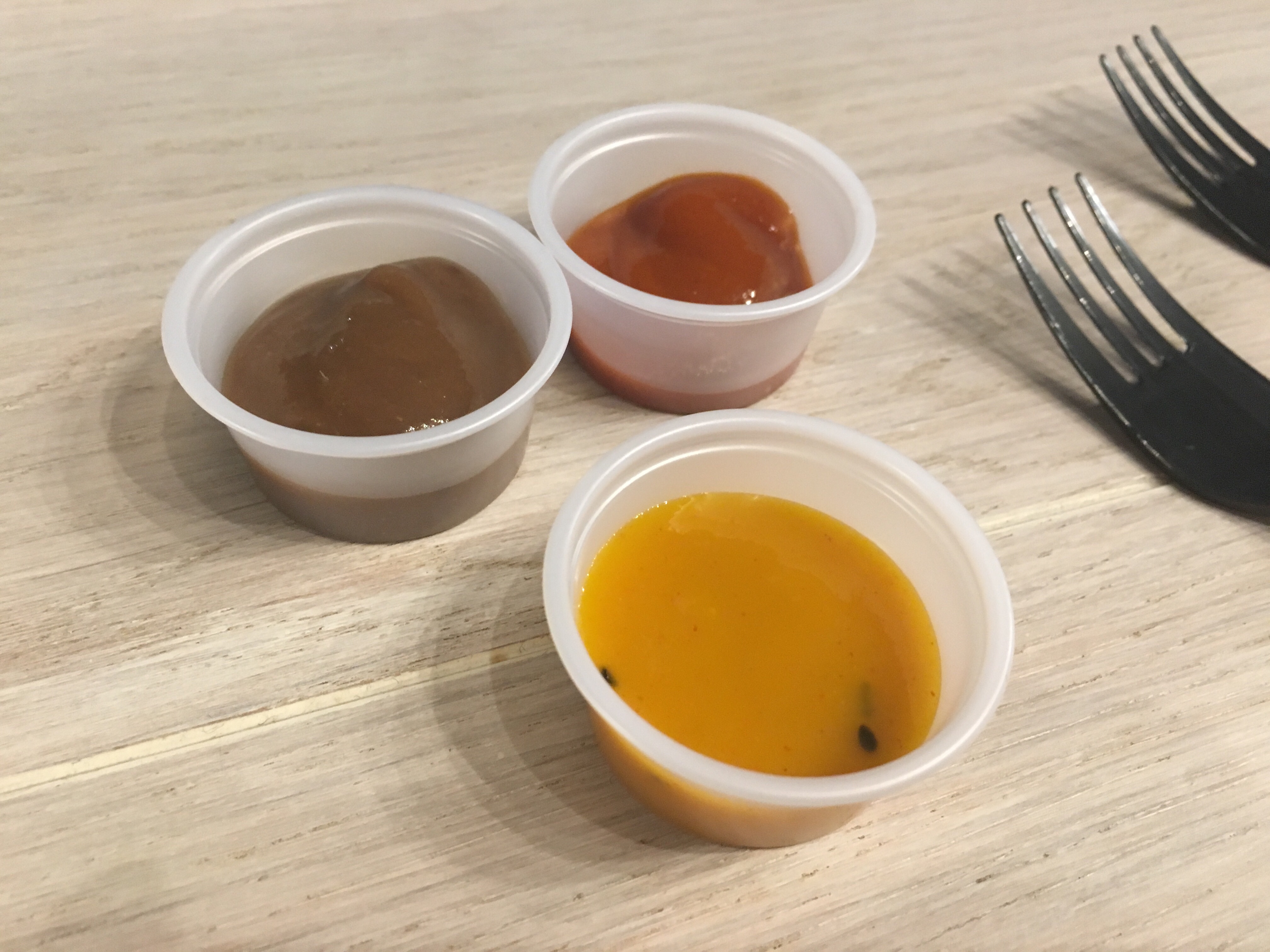 Lastly, the bowl or roll is topped with chutney for a bit more spice. Currently only the mild and hot chutneys are vegan, as the medium one contains yoghurt, but I was told that in a couple of weeks they are replacing that with an updated vegan-friendly recipe too (though definitely check with your server when ordering – they seemed very knowledgeable about the food). Great news for people who do like a bit of spice but can’t tolerate too much. The sweet mango and ginger sauce is a crowd-pleaser, but my favourite was the sour but mild pear and tamarind chutney. The hottest chutney brings a heat to the back of your throat which sits there for a while but doesn’t blow your head off, so you can taste all the flavours along with the spice. Everything is tossed in together, so with each bite you get a bit of everything for the full flavour experience.