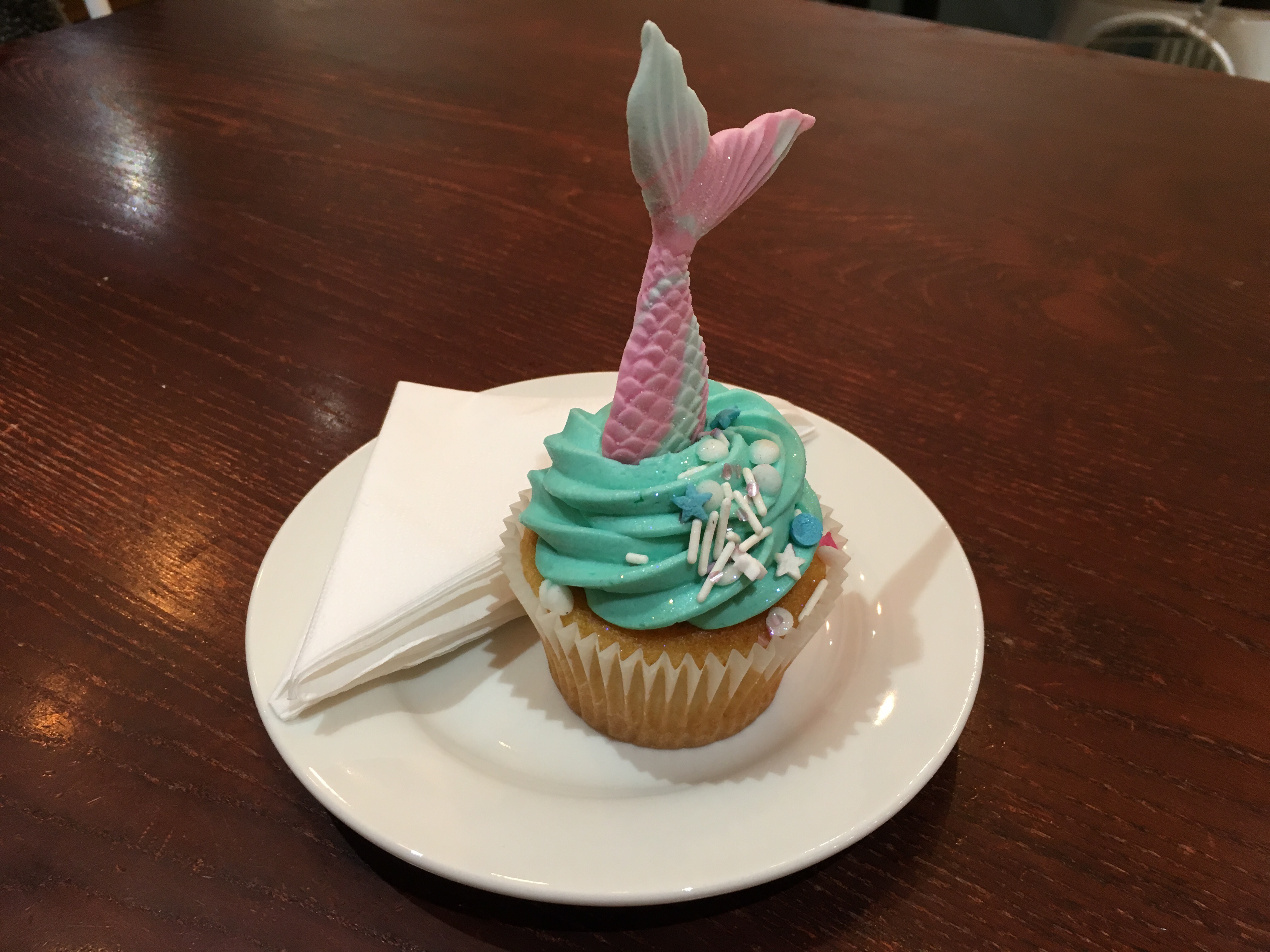 To finish off our meal, we shared a couple of Lola’s yummy-looking baked goods, her own creations fresh from that morning. There were literally only a handful left after Happy Friday Kitchen’s first day trading, so I bought them while we were waiting for our meals to arrive in case they sold out. I suspect the sweet treats on offer will change regularly, but we tried one of the beautiful mermaid cupcakes, and an oreo marshmallow brownie. The vanilla cupcake was baked perfectly and had just the right ratio of icing to cake for us, as well as looking very cute. The brownie was deliciously fudgy, chocolatey and indulgent. Also on offer was a white chocolate oreo rocky road, but sadly our stomachs couldn’t quite cope with three cakes between us after our mains. Perhaps Jamie would disagree, but I felt I had the perfect amount of food.