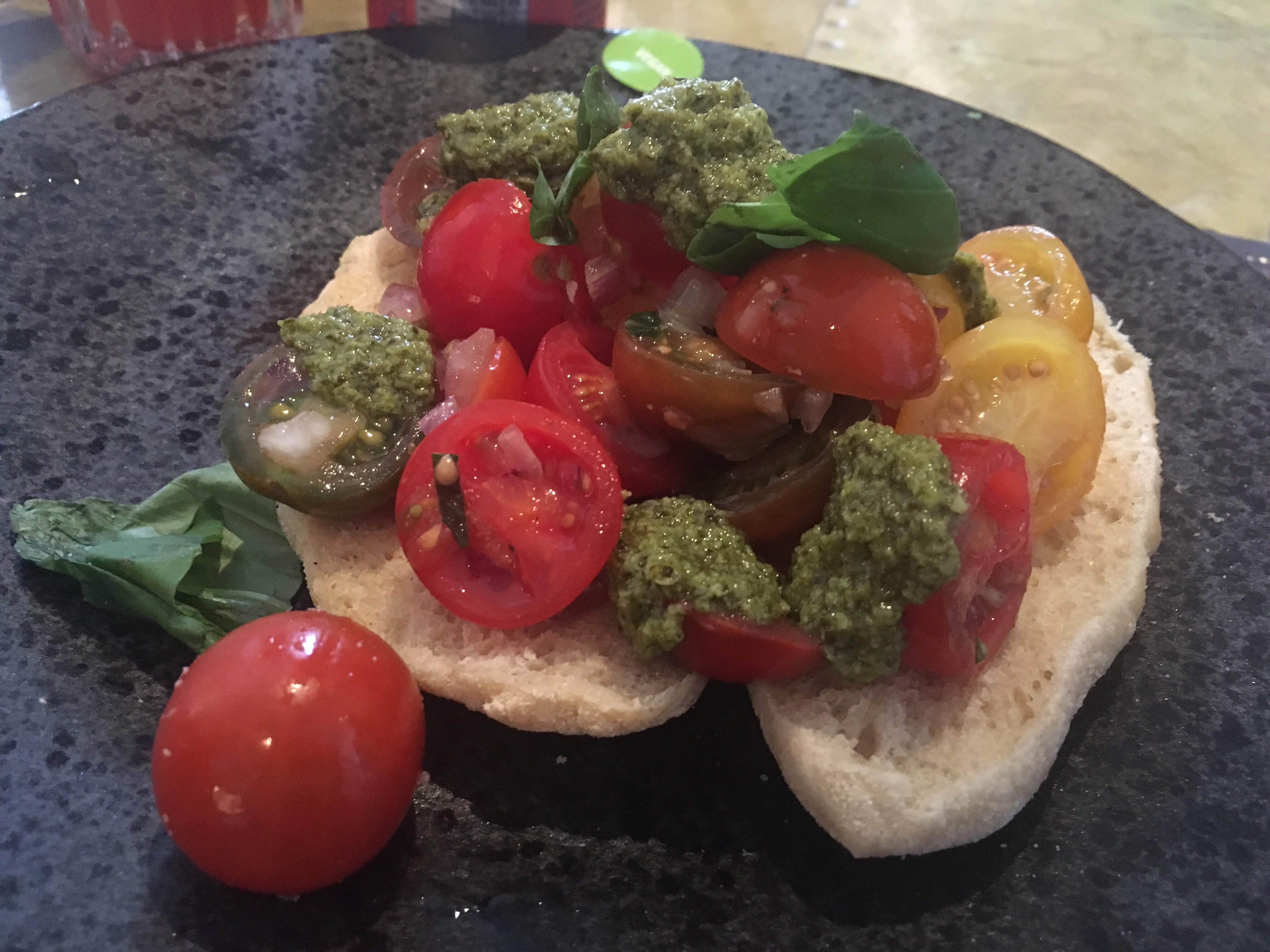 To start, I had the bruschetta with pesto and cherry tomatoes. It looked quite pretty on the plate and tasted nice enough, though was fairly uninspiring, and actually a lot smaller than most of the other starters when it arrived (although with it being a three course meal I suppose I didn’t need a huge starter anyway). The cherry tomatoes were pretty cold and firm, and they’d obviously just been taken out of a fridge, so I think they could’ve done with having been at room temperature a little longer which might have helped with the flavour.