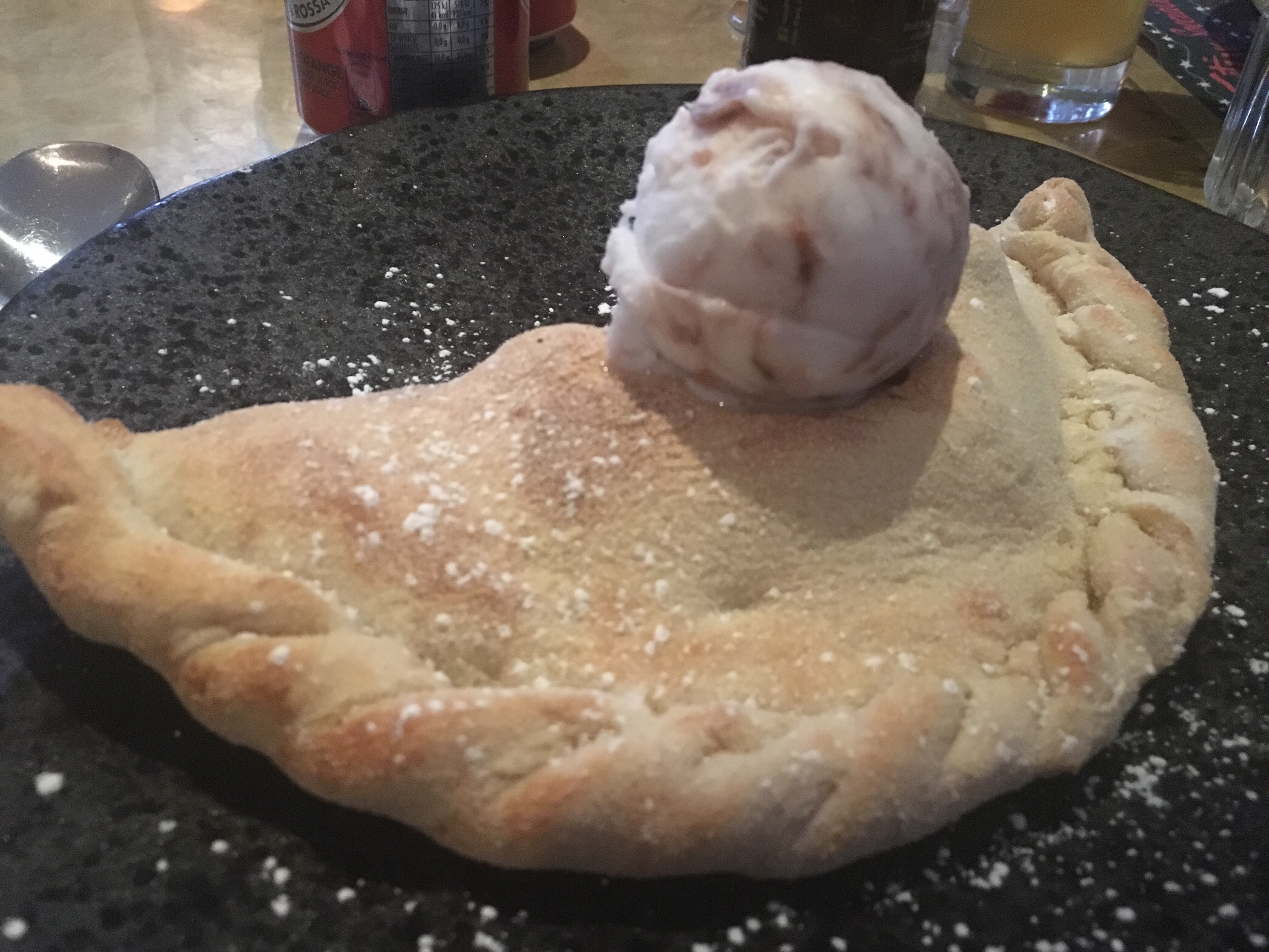 One of the vegan desserts is technically a special Christmas dish, but it’s a repeat from last year, and for someone who has eaten at Zizzi at Christmas time before it’s a bit boring. I think it would be nice for them to put forward something new rather than roll out the same ones every year – particularly as again they seem capable of doing this for the non-vegan menu options. Having said that, the dessert calzone with banana and blueberry filling is pretty tasty and a nice warming, filling pudding, and it’s topped with their coconut ripple vegan ice cream which tastes wonderful. I left the restaurant feeling content that I’d consumed a sufficient number of calories for my money. Also on offer is a vegan chocolate torte which you can find at Zizzi all year round, equally delicious and decadent.