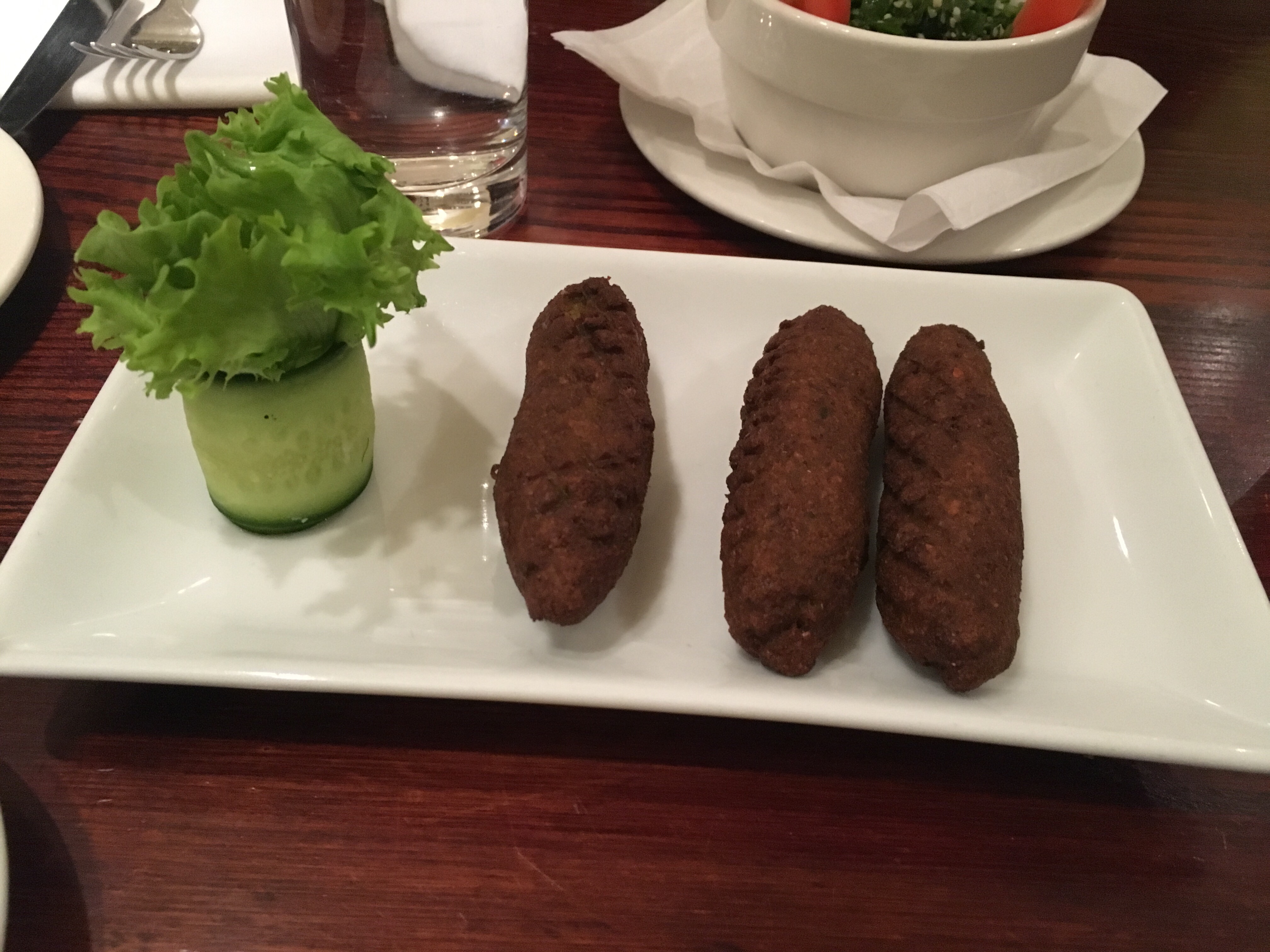 Because one dish is never enough for me, I also ordered the falafel. They were little sausage shapes rather than balls, and green because they were made with broad beans as well as chickpeas – and they were quite minty too. I really enjoyed the flavour and was happy to have something to dip in the coveted humus which I’d been eyeing up since we arrived. The falafel were perfect dunked in the creamy, garlicky dip. These along with my main was definitely too much carby food for a girl my size but I didn’t regret it one bit.