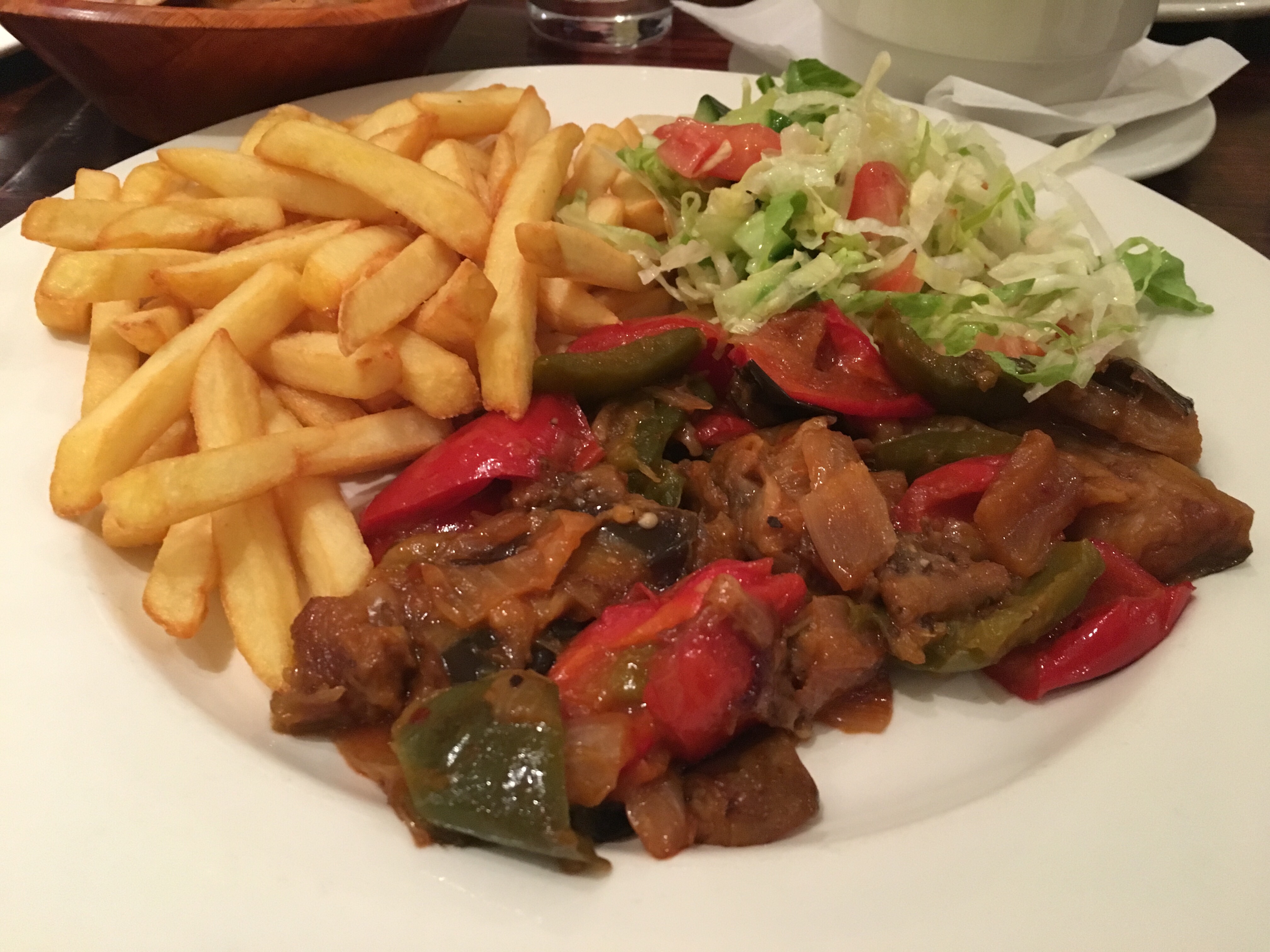 While I would’ve preferred to have been a bit healthier with just boiled rice, and I’m not really sure why they couldn’t offer that, man the chips were good! Probably just because I don’t have fries that often, but I really did enjoy the meal. The portion size was extremely generous too. The Imam Bayildi came out slightly different from what I was expecting, as on the menu it’s described as a stuffed roasted aubergine, but it was more like a ratattouille with diced aubergine, onion, and pepper. Regardless, the flavour was delicious, it was very warming, comforting and tasty. The vegetables were so nicely cooked and just kid of melted in your mouth. Also, at £7.95 for this massive plate of food, it’s definitely one of the best value quality dinners you can find on Cowley Road. I’ve just realised while writing this that I could definitely do a round-up post of Oxford’s best aubergine dishes, I’ve tried so many now!