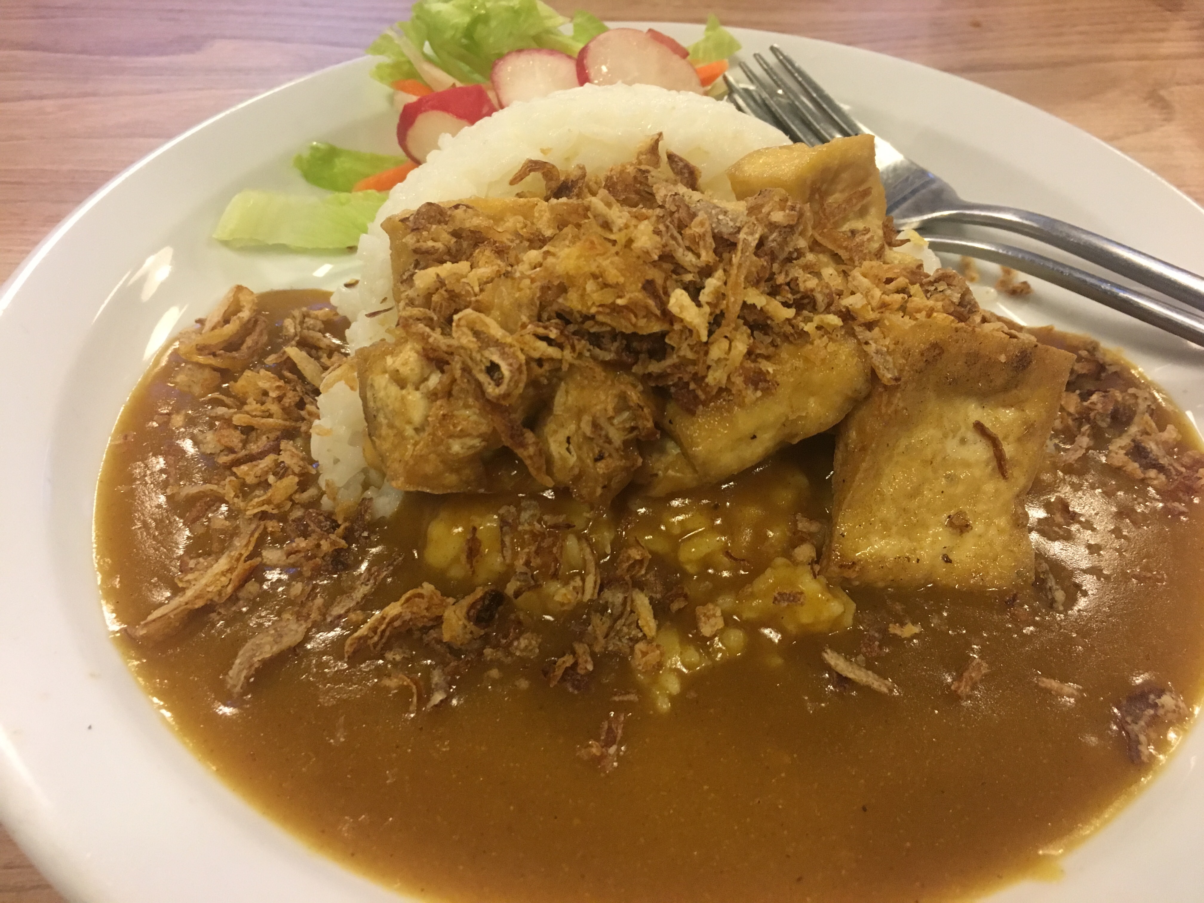 On our first night, we decided to visit TukTuck. It had come up multiple times in recommendations to me and the menu looked perfect for a party of two vegetarians and myself. In the end however we ended up with a full table of vegan dishes. I am a sucker for a katsu so I went for the tofu, with a mango and edamame salad. It’s a relaxed vibe where you order and pay upfront at the counter and the food comes out pretty quickly, fast food style. The prices were very low so I was surprised at the relatively generous portion sizes. My tofu was the perfect texture for me, and had absorbed plenty of that katsu flavour from the sauce. The rice was nicely cooked and it came with a little token salad on the side which was fine.