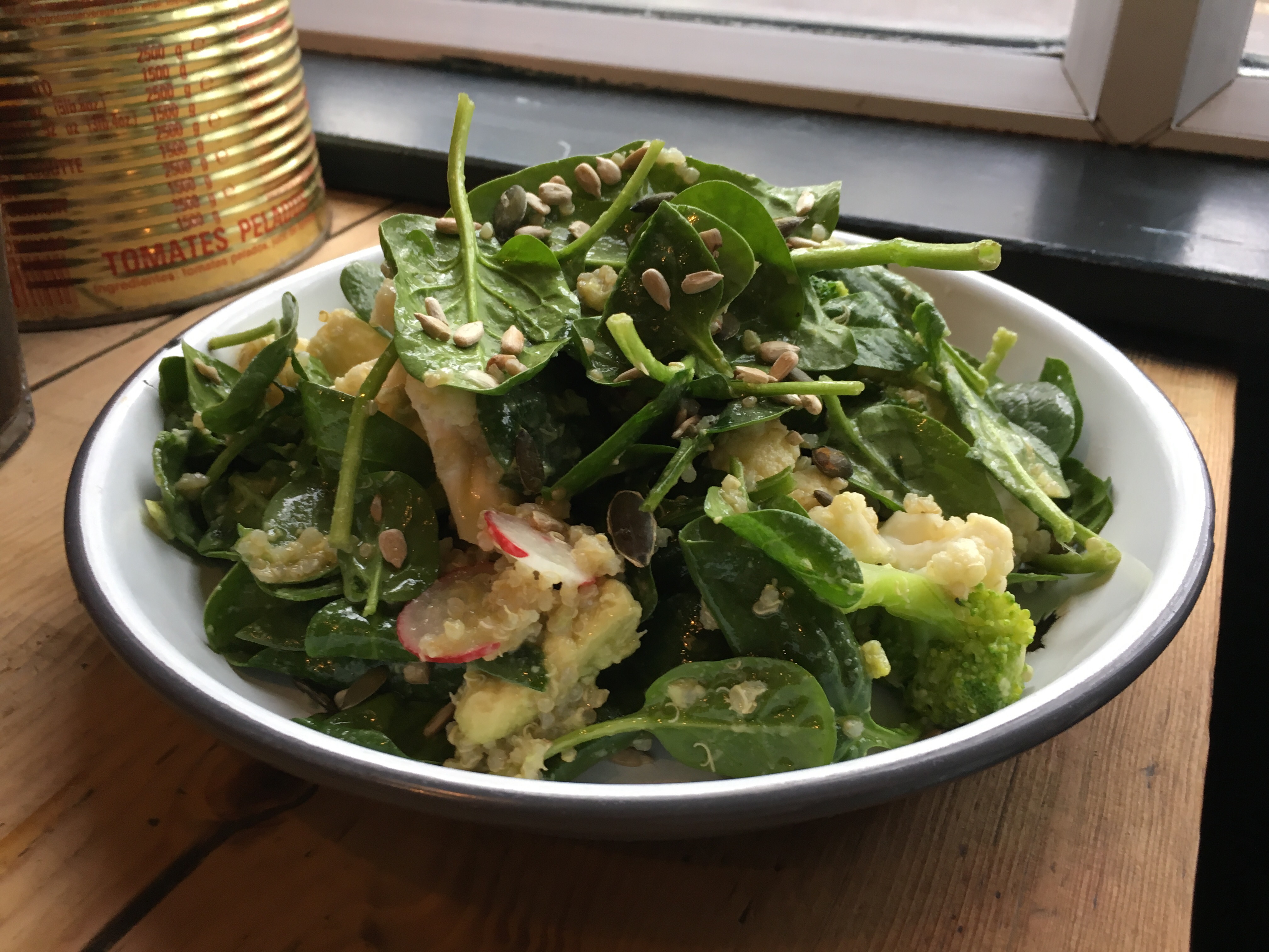 Lastly I ordered a clean and green bowl because there was a distinct lack of nutrients going on in any of the rest of our order (though of course it was all totally worth it). This salad would work well for a lunch as it’s obviously much lower calorie and a little cheaper too. It comes as a bowl of mainly spinach, cauliflower, and broccoli, with a handful of other greenery mixed in. The cauli and broccoli were just blanched so nice and crunchy, then you got a creaminess coming from small chunks of avocado. The zingy basil dressing brought a freshness to the bowl, though left the minimal amount of quinoa a bit soggy. The whole thing could’ve done with a crack of black pepper across the top. It’s a nice salad and I’ve had far worse certainly at pubs, but I definitely wouldn’t order it over the other options on the menu. I expect with the lashings of dressing and avo it probably isn’t as healthy an option as you might think either.