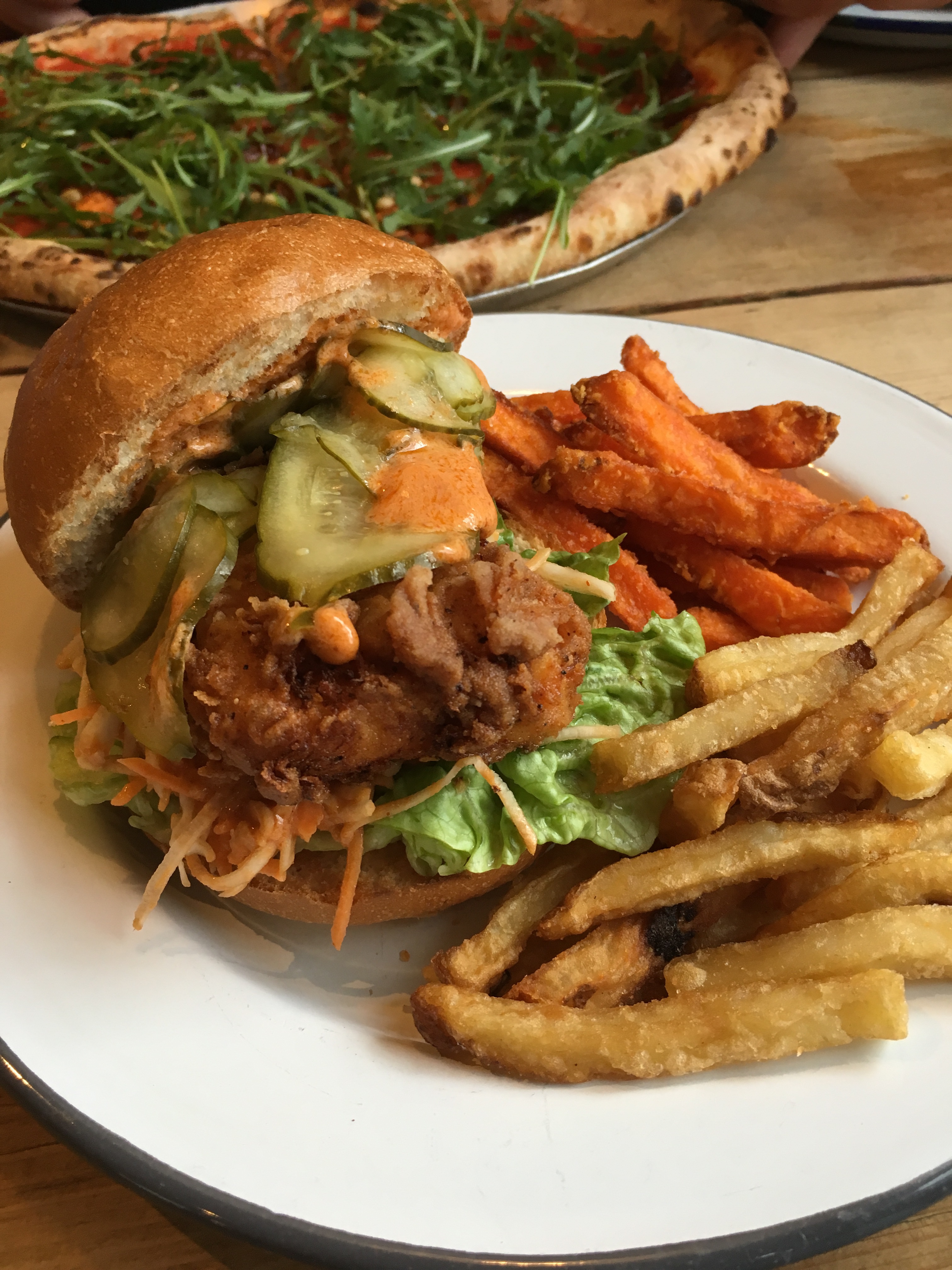 The Rickety Press is one of three locations that make up the Dodo Pub Co (the other Oxford pub being The Rusty Bicycle on Magdalen Road). The group’s tagline is ‘Neighbourhood spaces to eat, drink, and be social’ and the whole community vibe is really clear on stepping into The Rickety Press in Jericho. Every group which enters the pub is given a warm hello from the people behind the bar. On a Saturday lunchtime there were couples, groups of friends, young families, even people with their dogs choosing to share a meal together here: it’s a relaxed but buzzy environment.