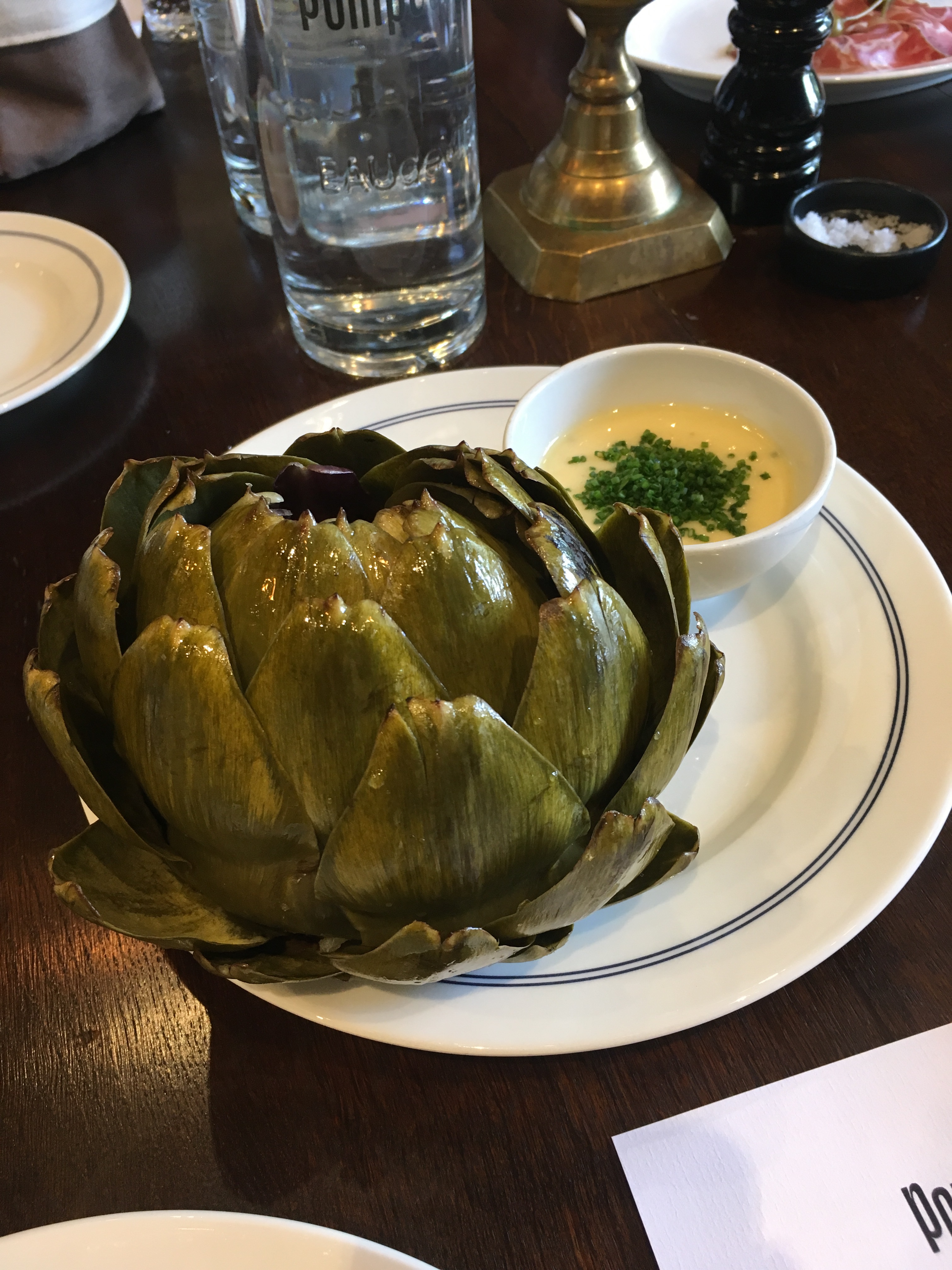 The first course was a bunch of sharing seafood salad platters for everyone else, and a globe artichoke for me. Perhaps the whole thing was actually for sharing because it was rather large – I did offer to the rest of the team but they weren’t too fussed. This was my first time eating artichoke anywhere other than on pizza (the shame) so I don’t have a lot to compare it to, but I really enjoyed the meaty texture of the heart and the mild flavour. It seemed that it had been boiled and it didn’t have any seasoning itself, but the delicious vinaigrette that it was served with packed a punch. I would seek this out again as a starter – in fact, I ordered an artichoke salad the following week at The Perch as I was keen to eat it again.