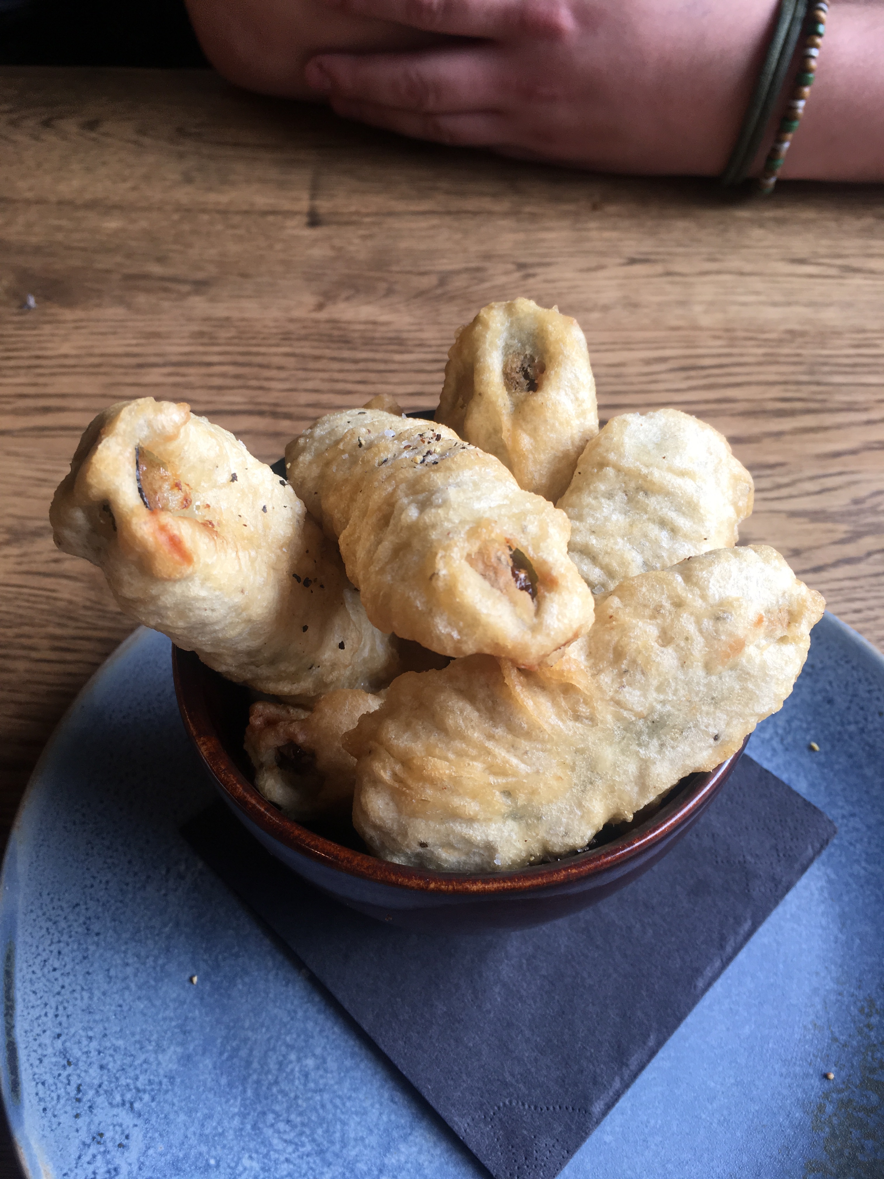 While we deliberated on what to order for our meals, we decided to share an appetiser of battered gherkins. I’d seen pictures of these on social media before we went and knew I had to try them. Even a couple of years ago the thought of eating a pickled gherkin would’ve grossed me out but somehow now I love them. They arrived absolutely piping how, and looked super enticing (I mean it’s deep-fried goodness, how could it not)? Both Jamie and I burnt our mouths with our impatience to eat. The crispy batter was nicely salted, some of them were crispier than others but across the board it wasn’t too greasy which was good. We both agreed we’d come here for a drink as an excuse just to order these. It was a decent portion size for sharing, probably could’ve served three, especially if those three people were about to eat as much food as we were!