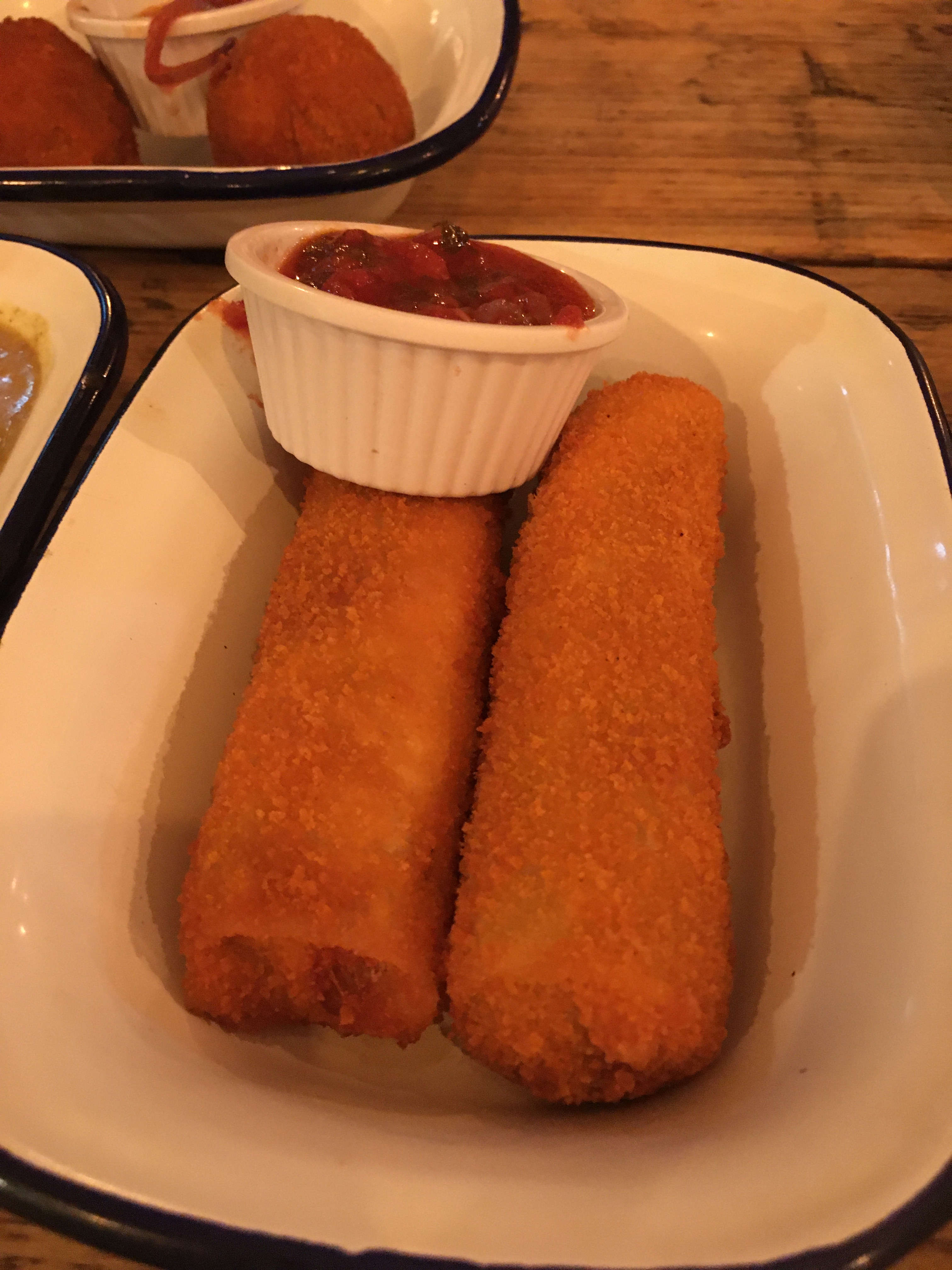 IMG_4100Another of the new dishes we’d ordered was the veg rolls, a peppery Sri Lankan style spring roll but coated again with super crispy breadcrumbs. The parcels were filled with spicy curried veg, it kind of reminded us of a next-level potato croquette. These were proper comfort food, and two of these large veg rolls was a great appetiser between the two of us for the rest of our meal.