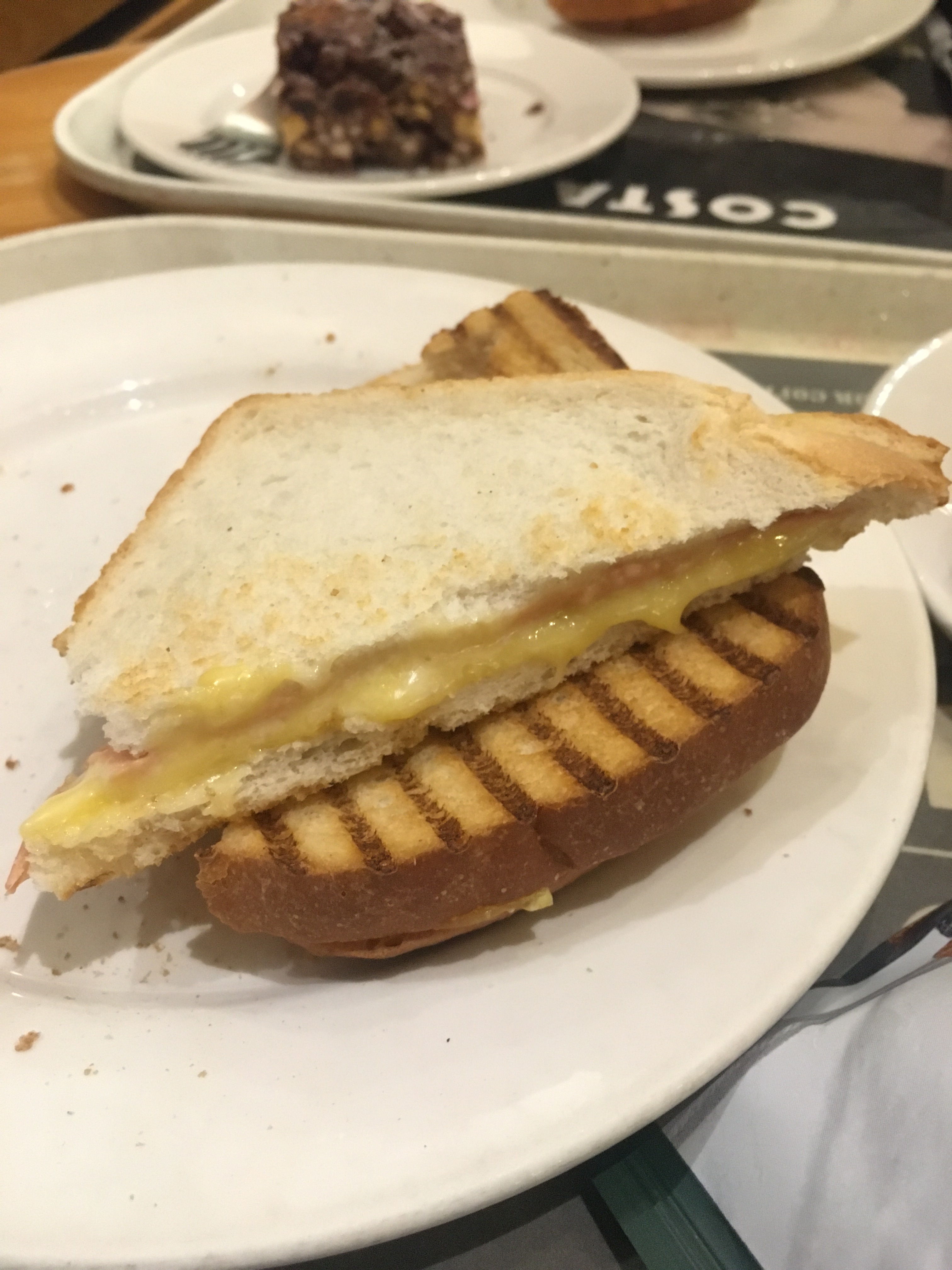 The point of this review isn’t really to explore the ‘dining’ experience in Costa as we all know what to expect, but I just had to include it. There were so many fruit flies hanging around the cake display, sitting on the walls, and flying around the tables while we ate, which was super offputting. I don’t know if just this particular Costa has an issue but next time I’d opt to take my food away rather than sit in their fairly unpleasant environment.