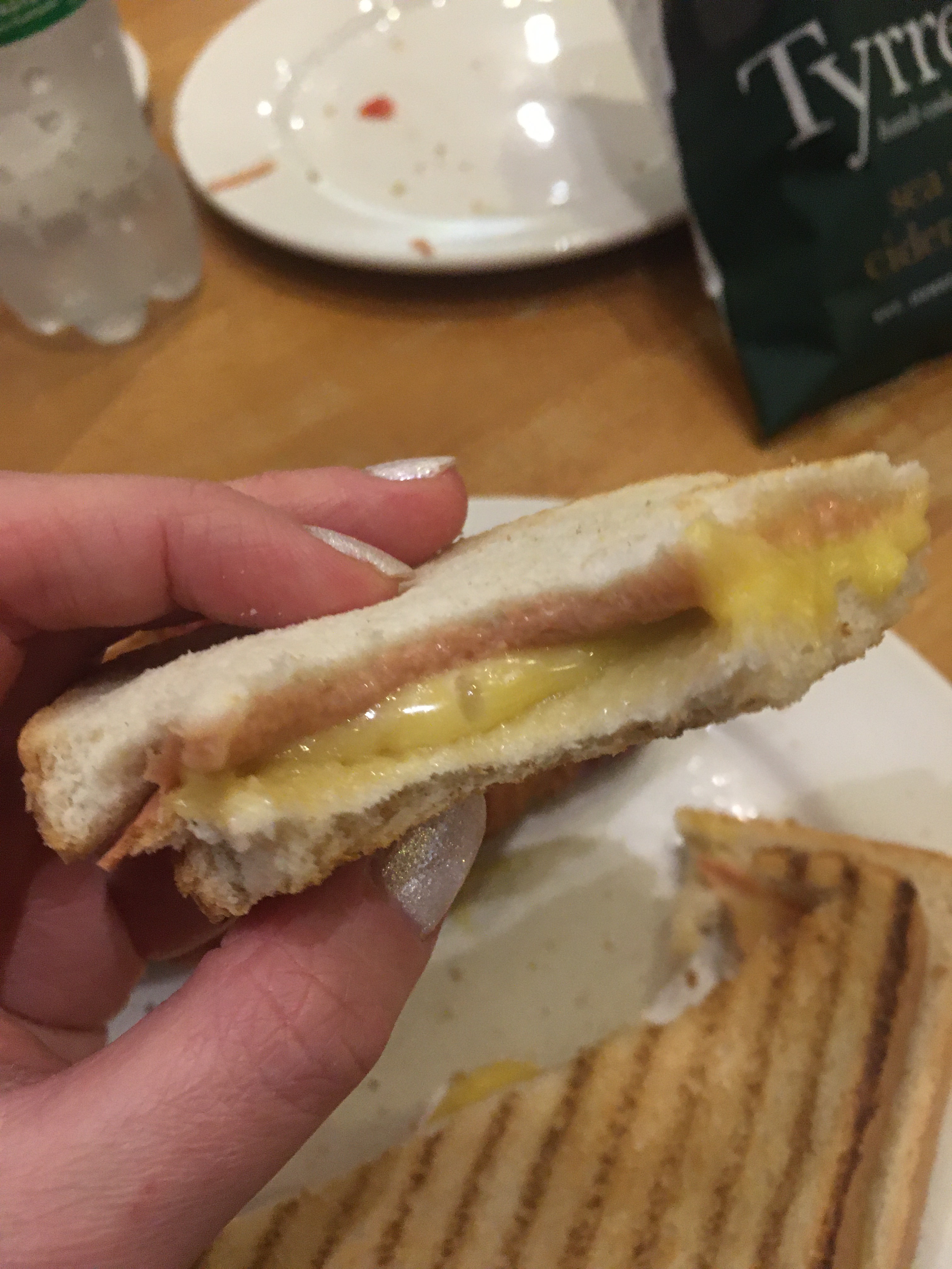 For under a fiver, you can get a toasted sandwich, hot or bottled drink, and packet of crisps or fruit, which I thought sounded very reasonable compared to Costa’s usual fairly steep prices. I’d wanted to try both the new vegan sandwiches, but sadly the Vegan All-Day Breakfast Panini was sold out by the time I got to the Costa in Oxford city centre at 1pm, so I just picked up the ‘ham and cheese’ toastie. There’s also a new vegan chilli pot made with mock mince if you’re looking for a healthier option. The queue was long and noisy and the whole experience was fairly stressful – I’ve found this to always be the case at Queen’s Street Costa and in fact most other branches, but at this kind of chain sadly I wouldn’t expect any different. Still, the queue moves quickly so we weren’t subjected to too long of a wait.