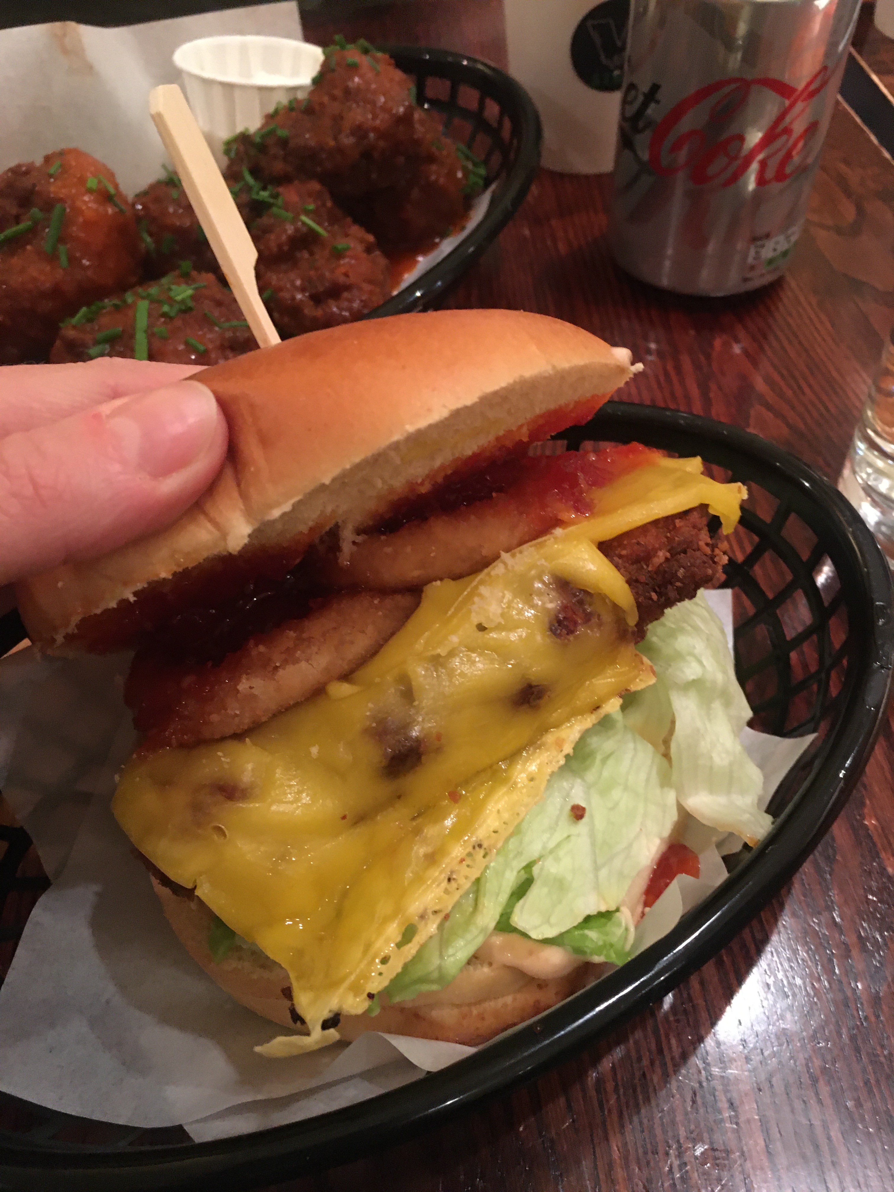 The pop-up saw the launch of V Stack’s brand new burger, the Jammer Stack, which I was told took them endless tweaks and hours and hours of work to get perfect. On tasting it, I hope they feel the time and effort was absolutely worth it, because this burger is insane! A salty, crispy deep-fried cauliflower steak sits on a bed of iceberg lettuce and is topped with sriracha, melty vegan cheese, onion rings, and a homemade sweet chilli jam. It’s got a real kick to it but not too spicy, and the flavour combinations are spot on. From the soft bun, to the crunch of the breadcrumbs coating, through to that cauliflower which has still retained its texture so isn’t soggy at all, this was pure decadent vegan junk food at its finest.