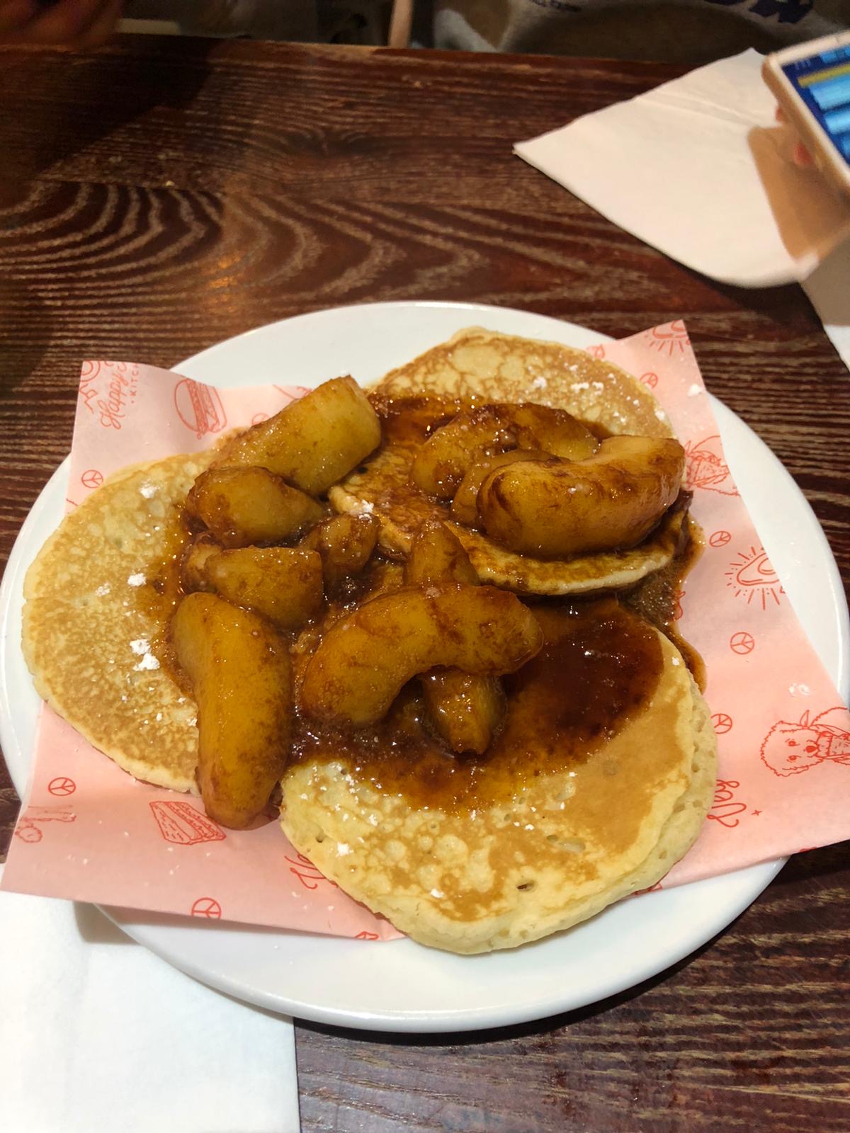 Somehow (and please know we did end up taking some takeaway boxes home!) we managed to find room for pudding. I had to order from the pancakes menu, with a number of delicious sounding options, but landed on the apple cinnamon combination. The plate comes with three beautiful light and fluffy American style pancakes, stacked with all the toppings. The stewed apples were just the right texture for me, soft but still with a bit. They weren’t overly sweet, which was good, because the sauce certainly was. The Christmassy spices in there were a bit too aromatic for us. I would happily order the pancakes again to try some of the other toppings!