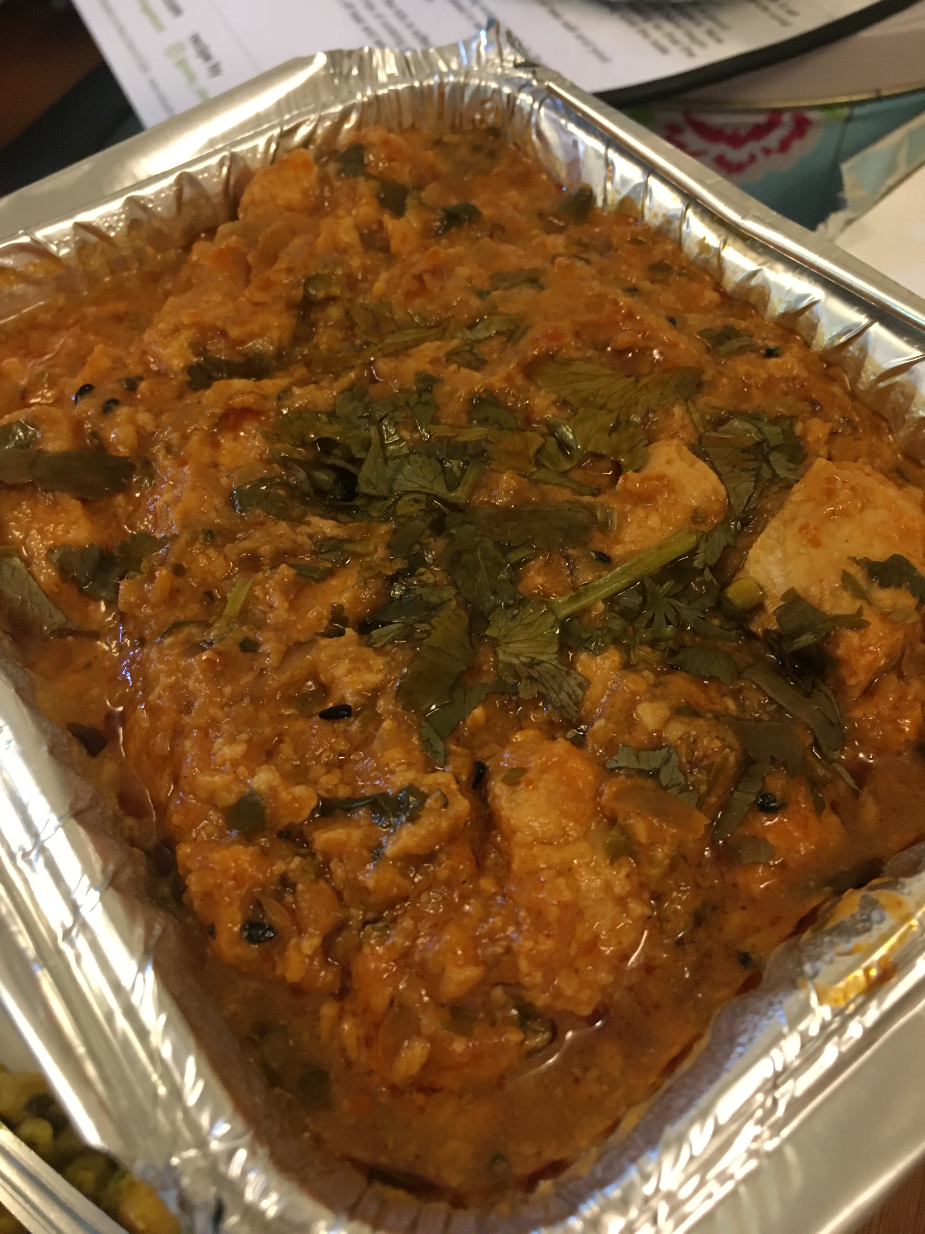 The thing I was most intrigued to try was the ‘chicken’ tiki masala, made with vegan Quorn pieces. A number of local Indian restaurants have started to think about labelling vegan options on their menu, but as yet no one else is offering us something using mock meat. The dish didn’t disappoint.