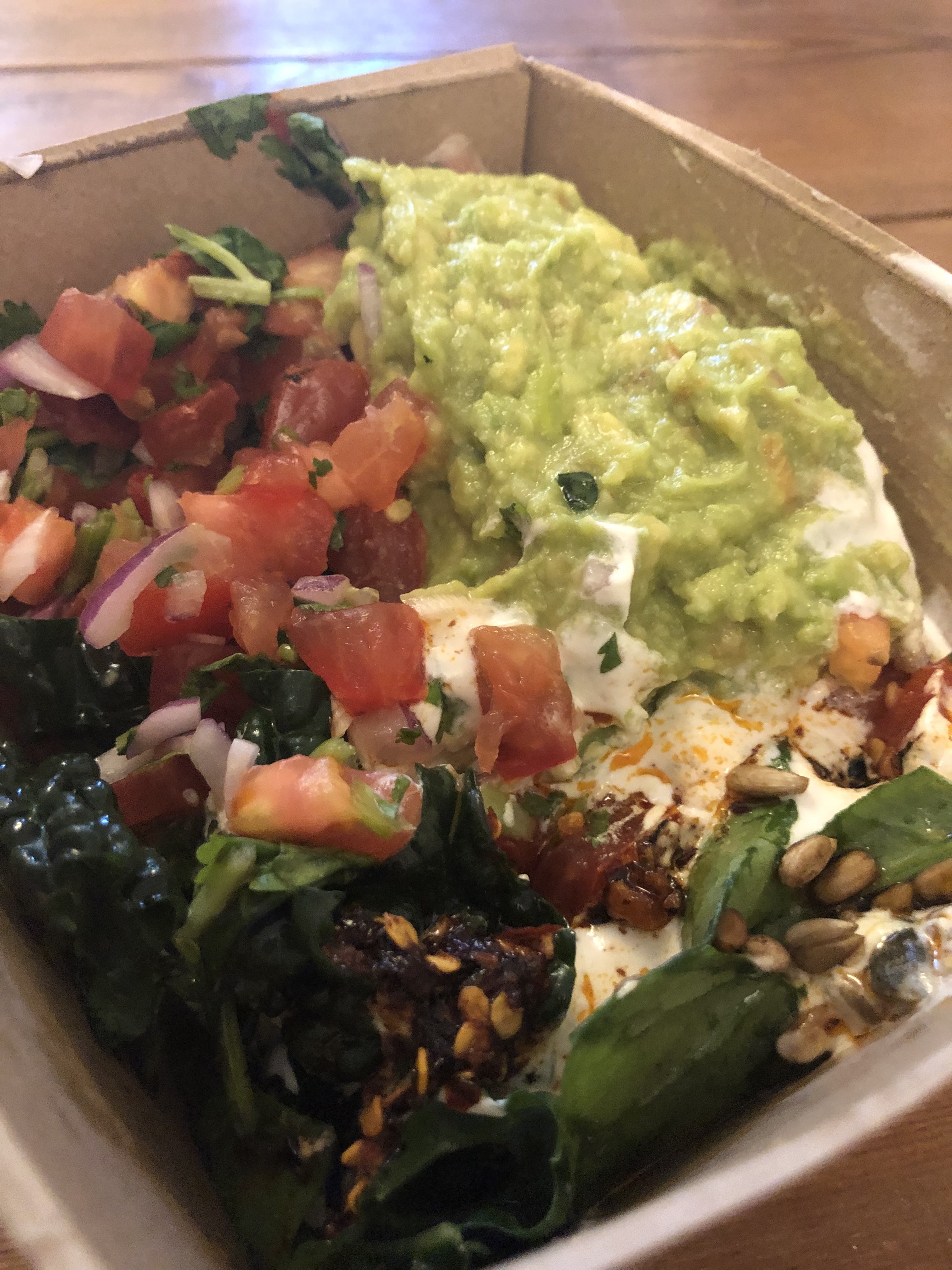 To top off the salad, if you dare, ask for the super spicy homemade salsa macha. I’d cycled home with my salad in my bag so mine had got pretty evenly tossed through the greens. I have to say it was possibly the spiciest thing I’ve ever eaten. Not for the fainthearted, so you could always try it on the side of your salad and see what you think before mixing it through, but it does add an extra element of warming flavour to the box.
