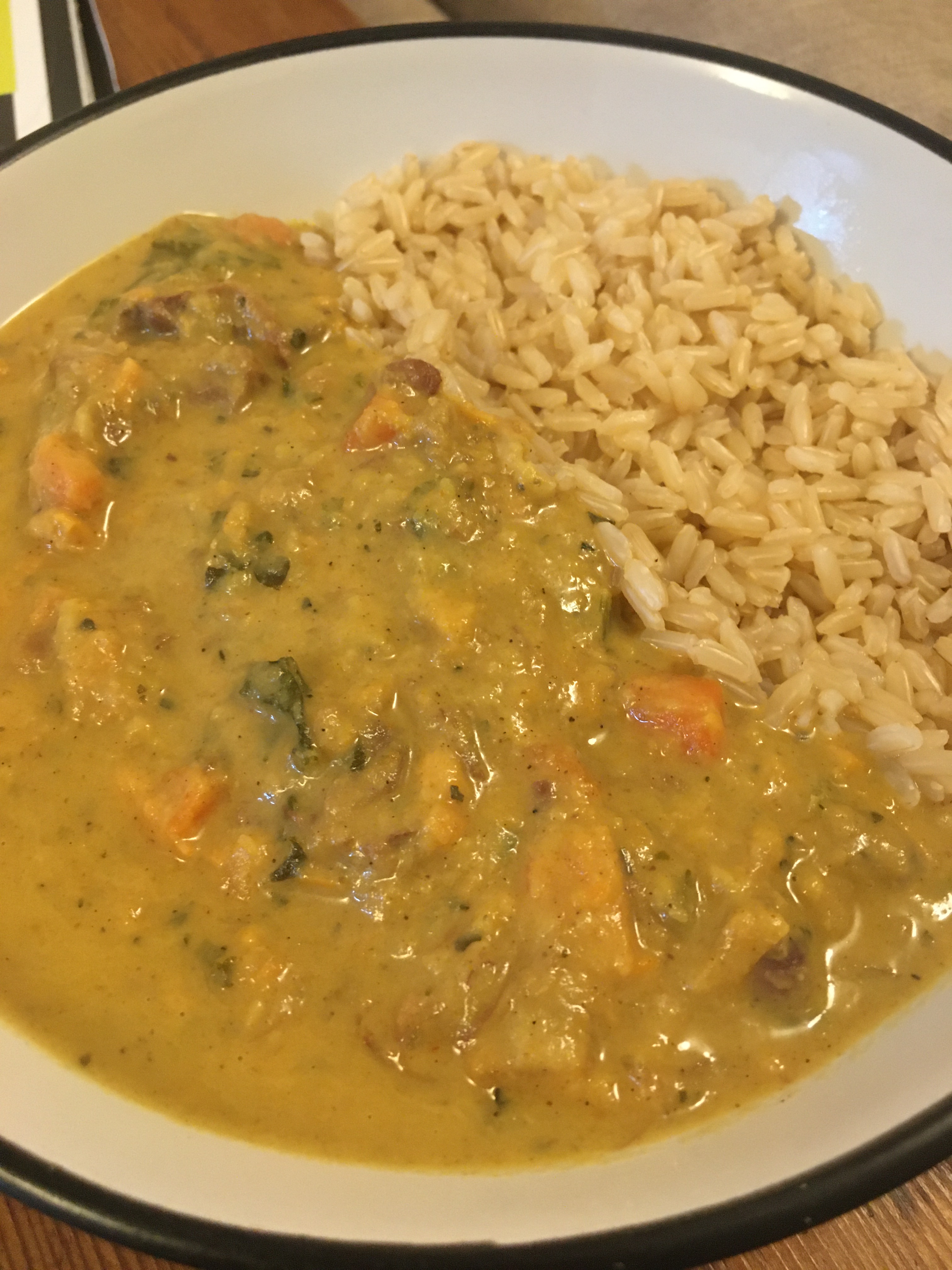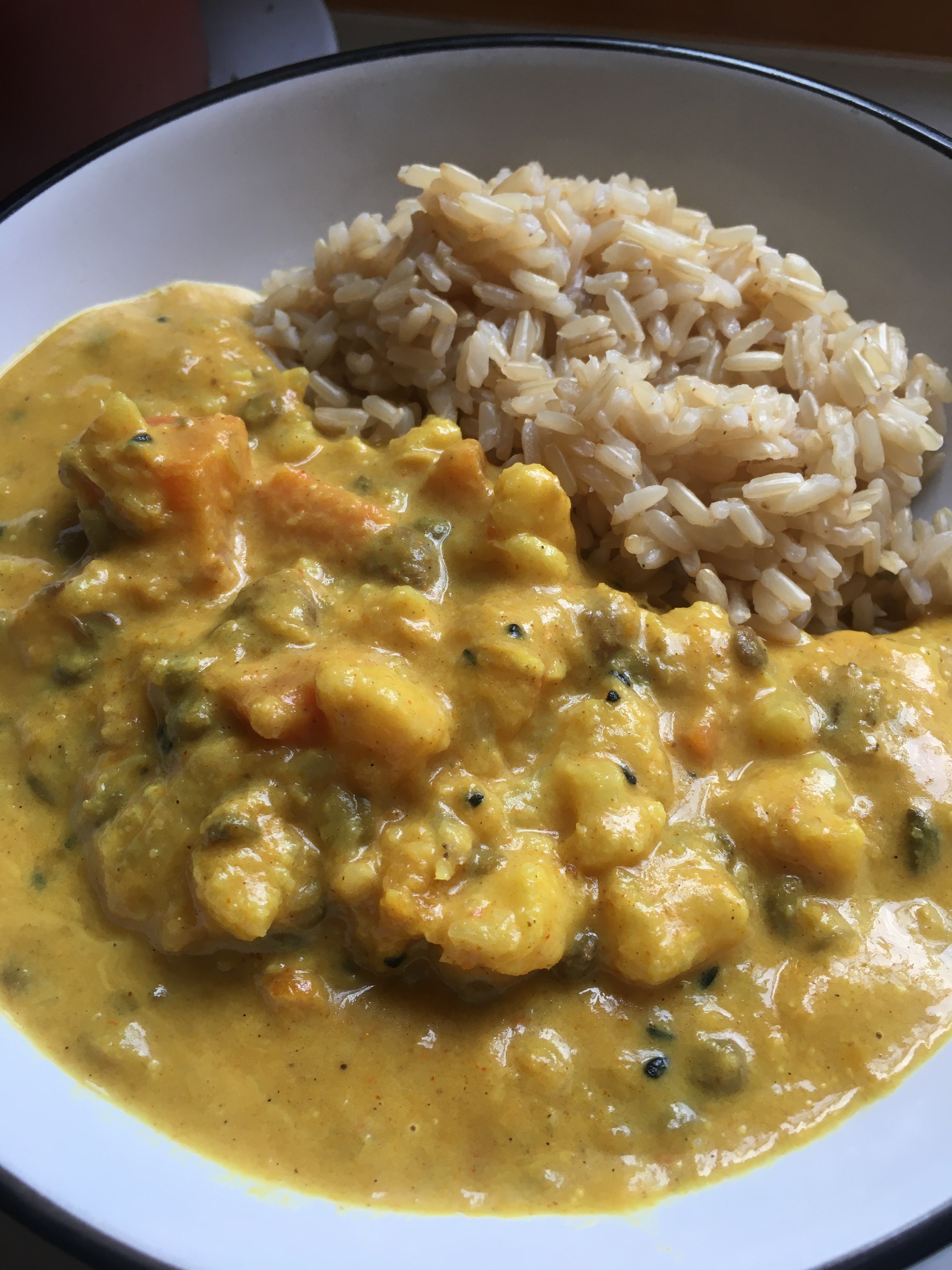 Lastly came the coconut, jackfruit and lime curry. We’d defrosted it from the freezer and it didn’t seem to decrease in quality at all. The curry was mild, though had a bit more spice than the gobi. I don’t think I’m quite a jackfruit convert, it did add a bit of a meaty texture but doesn’t have the bite you want from a meat substitute. The flavours were great though, with some further textures coming from the small chopped sweet potato and carrot, and a thick and luxurious Sri-Lankan style curry sauce. Another super enjoyable meal.