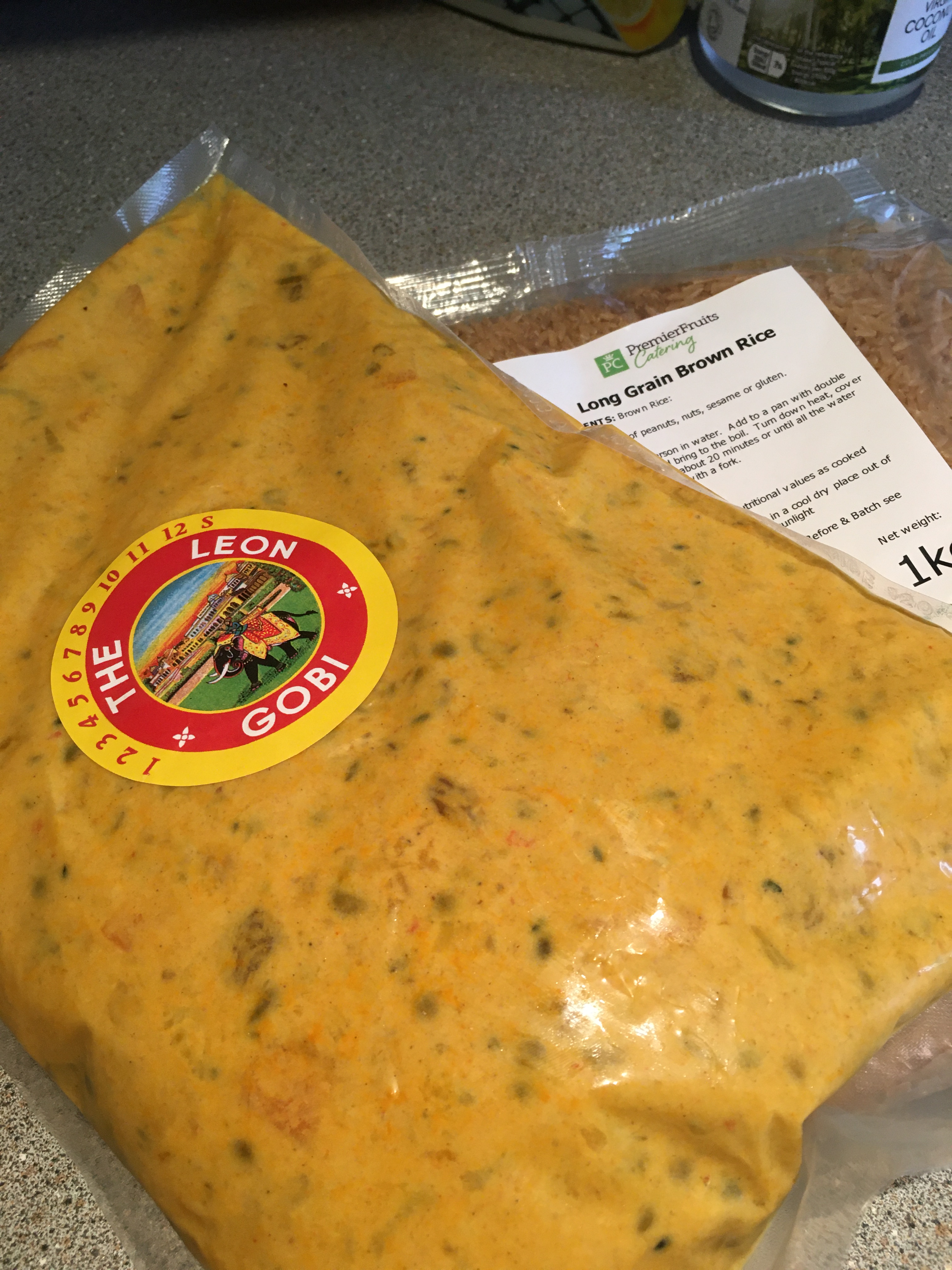 For £32, you get a box containing three different vegan classics that you’ll recognise from Leon’s dine-in menu in more normal times, and a kilo of rice to serve them all with. Each meal serves four, so at just over £2.50 a portion, it comes in substantially cheaper than you’d be paying to tuck into at the Oxford city restaurant. They come in vacuum-packed plastic sachets, which are pretty easy to squeeze in the fridge however little room you’ve got, although sadly don’t seem the most environmentally friendly. A sticker with cooking instructions on the back features options for both hob and microwave heating, and handily includes times adjusted depending on how many portions you’re cooking (I wish more packaging which contains multiple servings would include this)! They had quite short dates on, and between the two of us we wouldn’t have been able to eat it all before going out of date even if we had it for breakfast, lunch and dinner, but they’re freezer friendly, so it’s all good!