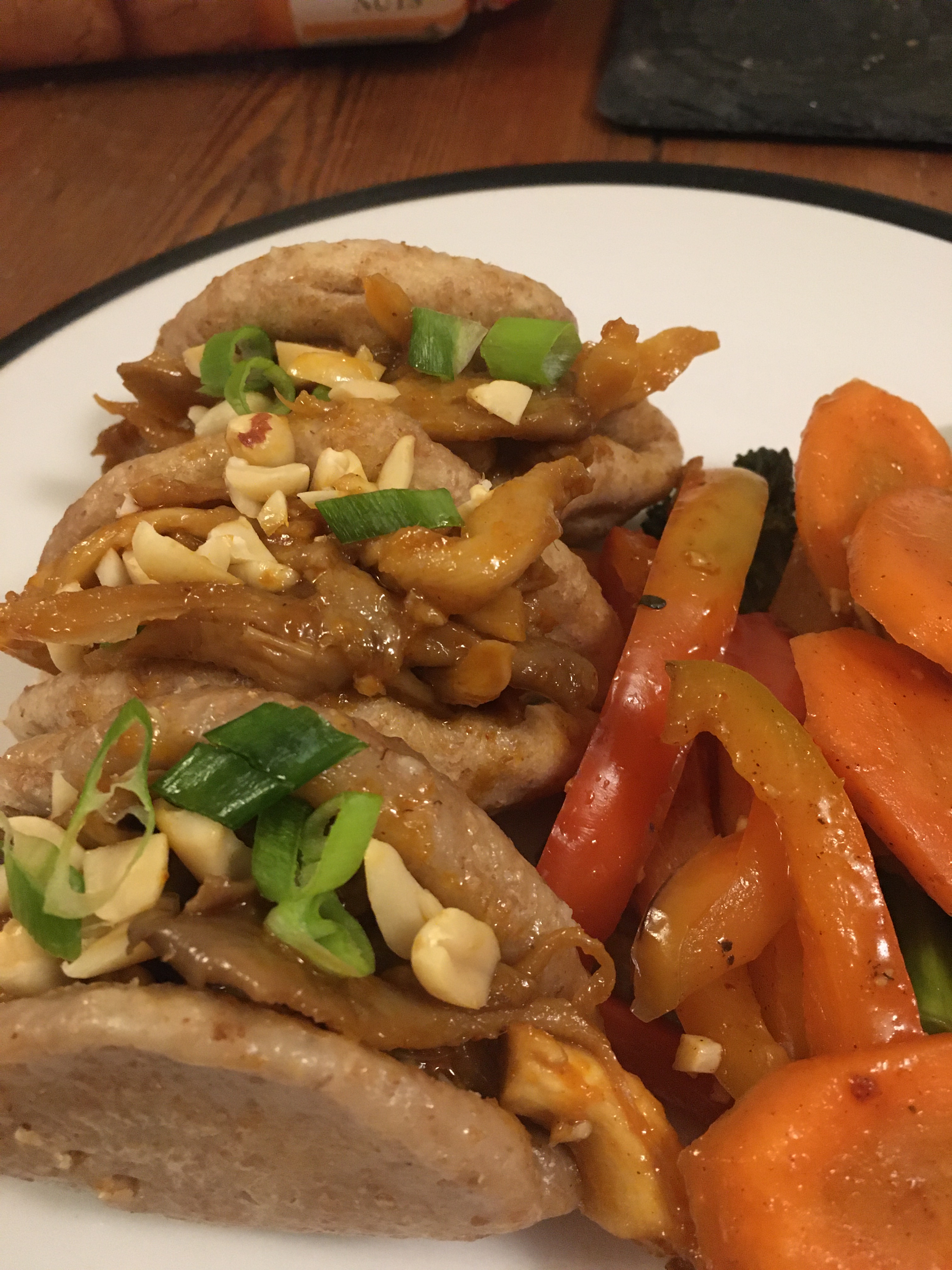 This recipe fits all on one page too – but the ingredients list is longer than the instructions! We absolutely love bao buns so despite various fiascos trying to make bread in the past, I just had to give these a go. PSA – don’t bother to attempt this if you don’t have a proper steamer. My makeshift steamer using a colander didn’t quite work out right. However, the buns were still edible and I’m pretty confident that had I followed the simple recipe to the letter, we would’ve had fluffy, pillowy bread. The recipe uses jackfruit, but neither Jamie or I are huge fans, so we swapped it out for oyster mushrooms instead. The sauce is sticky, decadent, and delicious – and despite the long ingredients list putting me off a bit initially, you can throw all the ingredients in together and mix in a matter of seconds. Loved trying something a bit different and fancy, and would like to try these again once I’ve invested in the proper kit.