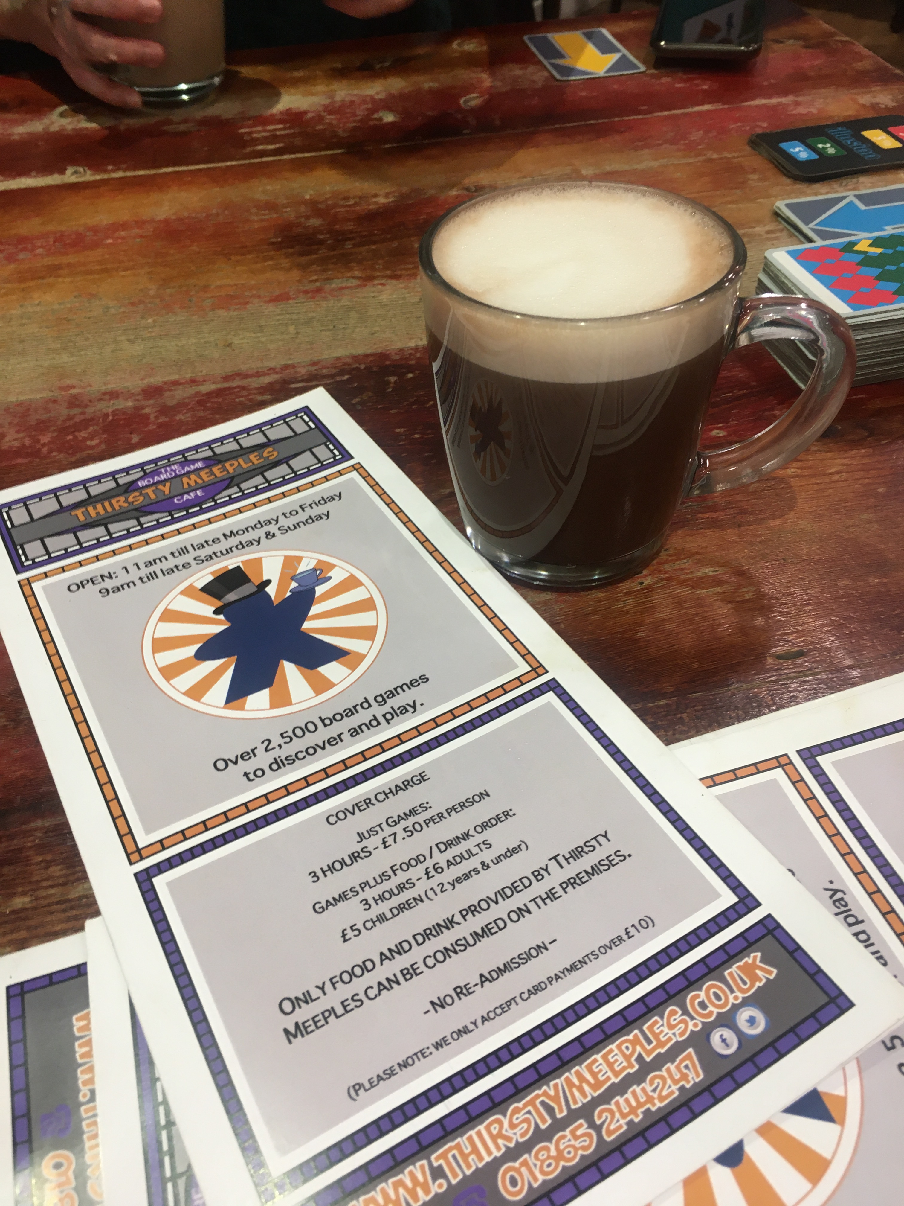 One of the few places still thriving in Gloucester Green, Thirsty Meeples is a popular board game café which offers you access to hundreds of games, hot and cold drinks, from a variety of teas to vegan-labelled beers, and plenty of snacks. We booked a table for a Friday night – one of their busiest times so definitely don’t just show up – for three hours of board gaming after work. The deal is you pay £7.50 per adult for the games, or £6 if you order food and drink. You can pick from old favourites or ask a member of staff to recommend you something based on the sorts of things you like to play. We’d planned to stay for a couple of hours then go home for dinner, but while we were there I thought it was a good opportunity to try their vegan food and let you know my thoughts!