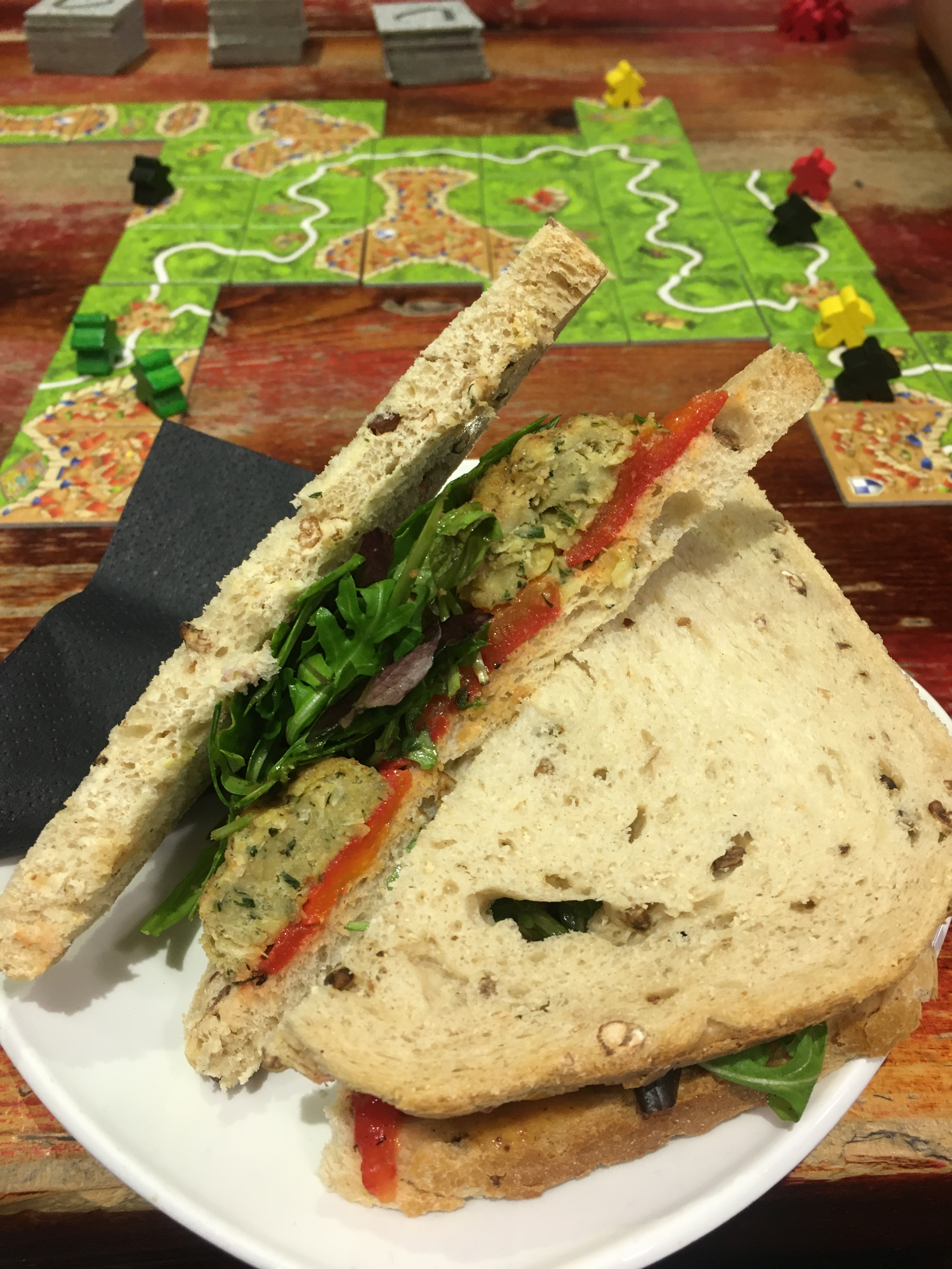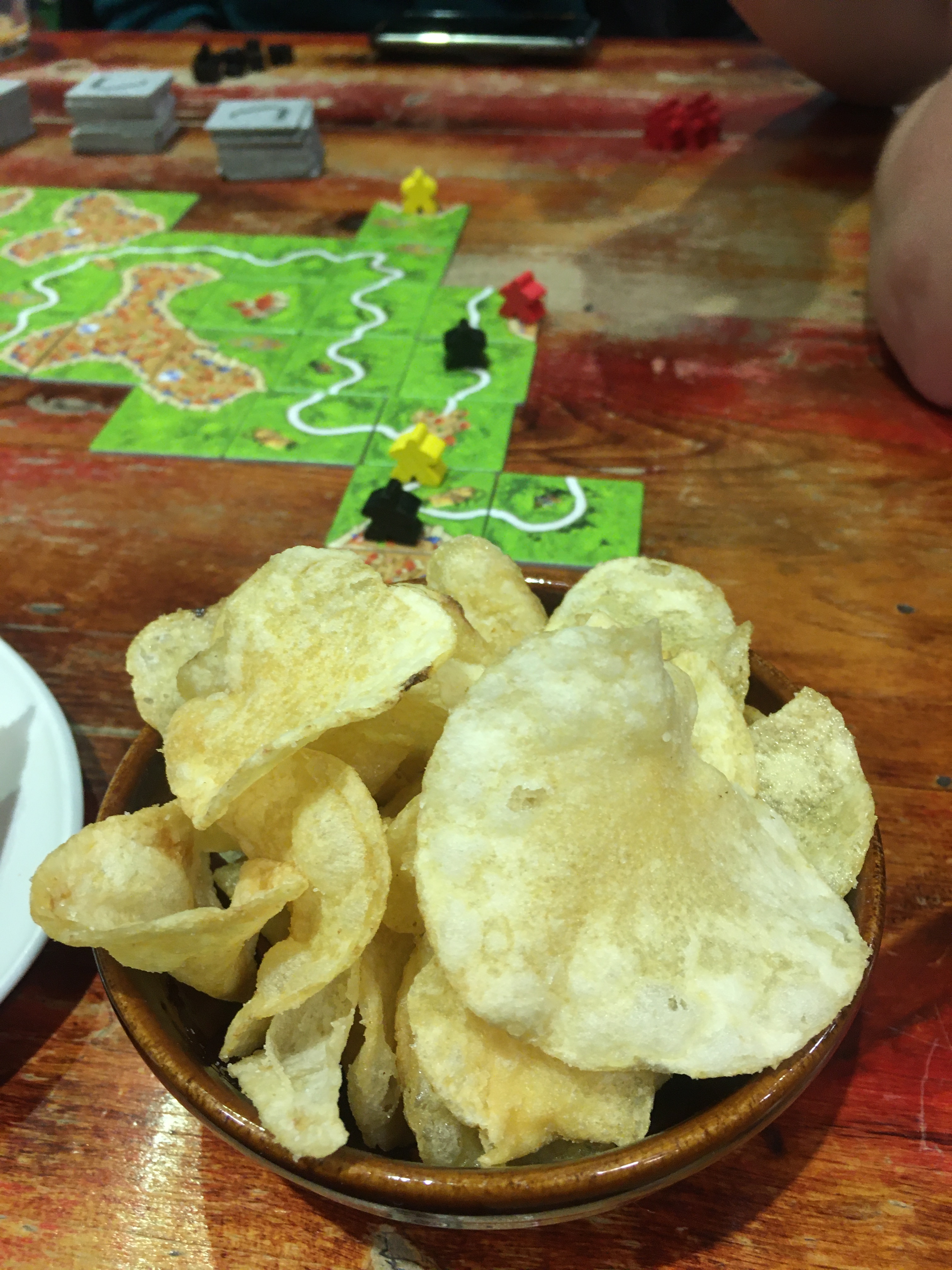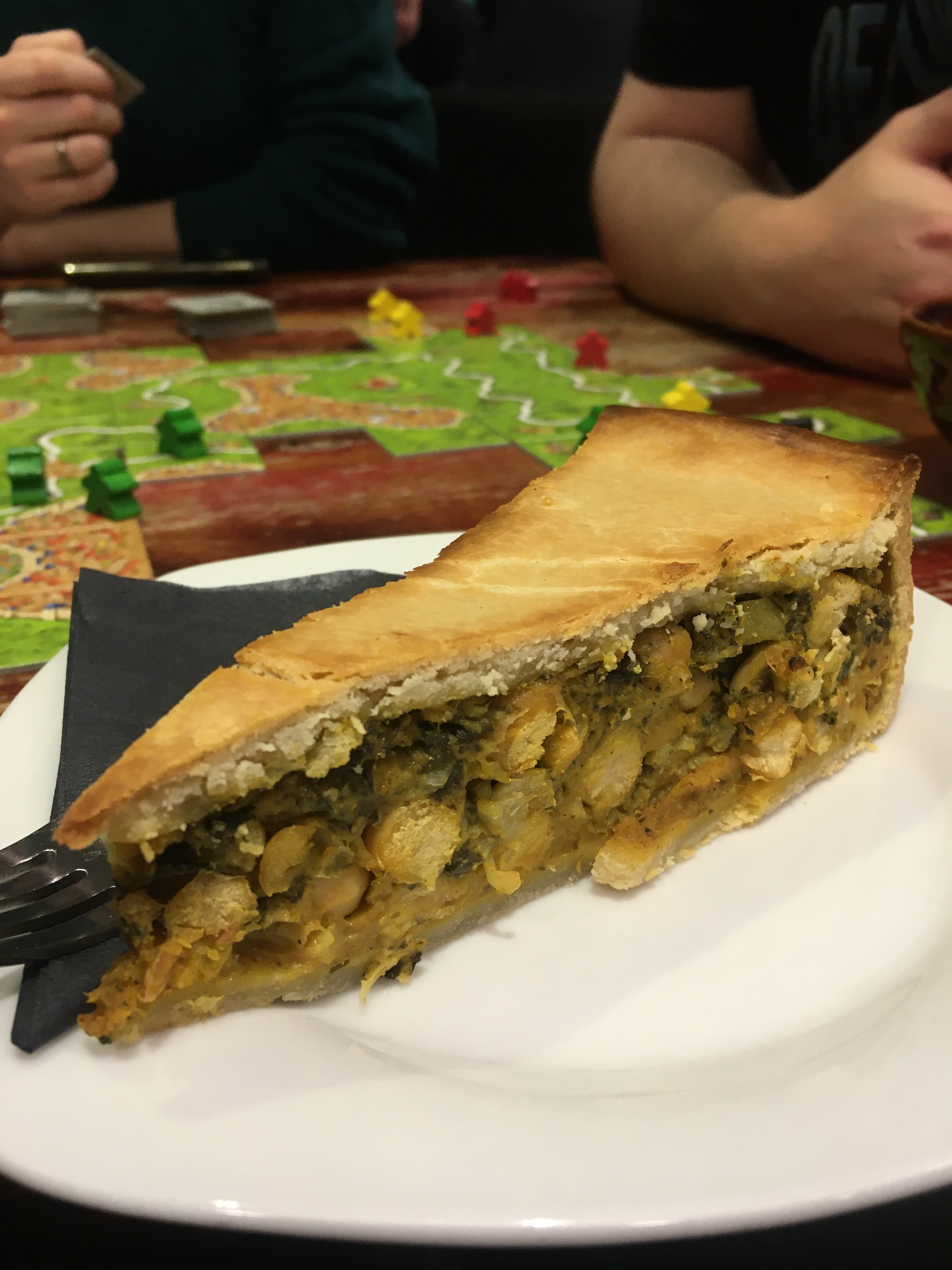 Pro-tip, which I didn’t think about until after I’d finished eating, bring hand sanitiser! Once I got thinking about the fact that I was licking the salt and vinegar off my fingers from a bowl of crisps (an extra £2.50 but they were very tasty) in between handling cards and game pieces that dozens of other people had played with, I was a little put off my food. All in all, no one is choosing to go to a board game café just to get lunch, and certainly not expecting a cheap lunch, but it’s so great to know that if you want to spend three hours there getting your geek on, you won’t go hungry! I also really appreciated that the staff were very knowledgeable about the menu, what was in the food, and what was and wasn’t suitable for vegans. We had a great evening and I’m looking forward to going back.