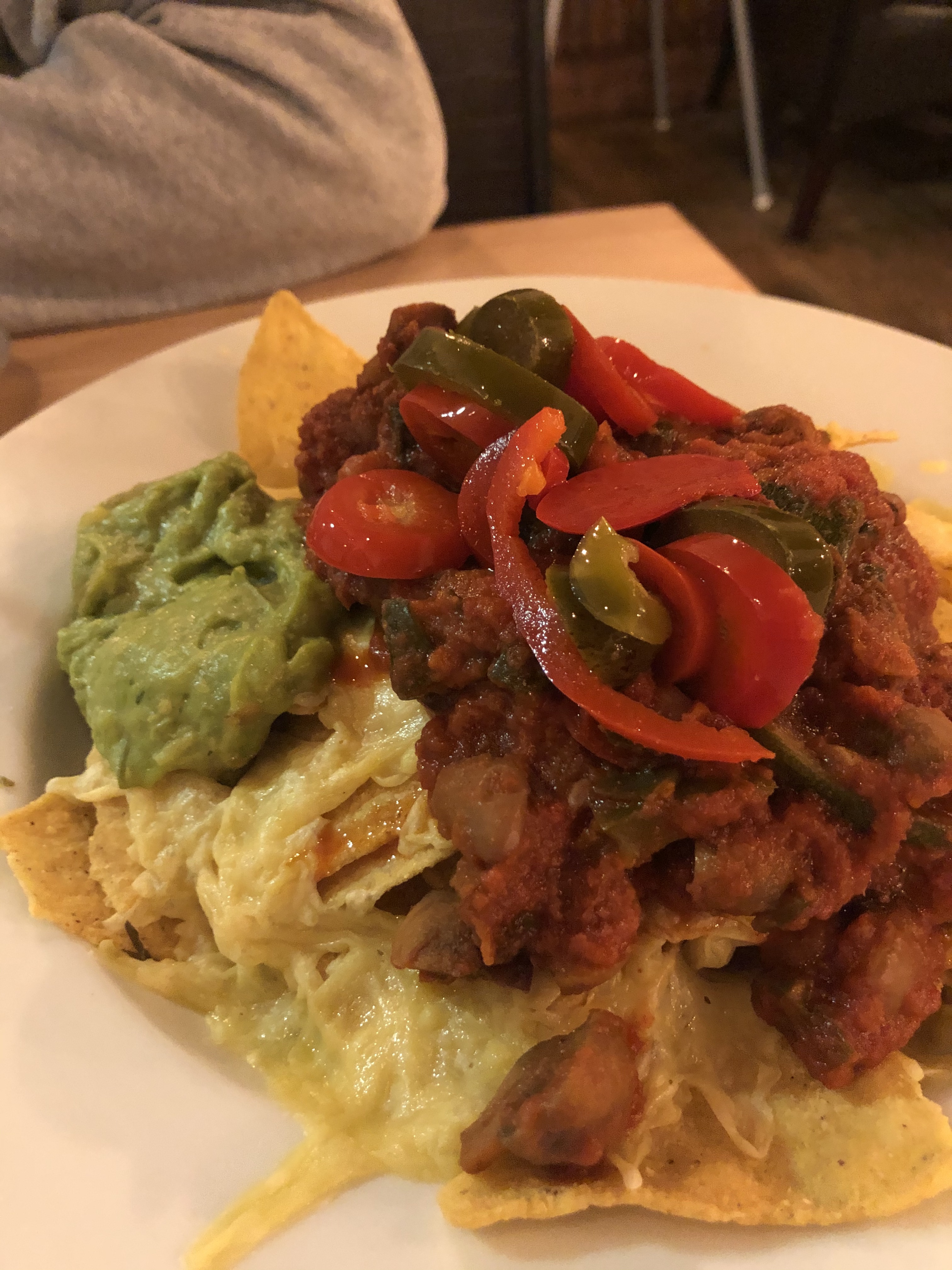 When our food finally arrived, there were issues. My pulled jackfruit burger came without the jackfruit, a pretty major flaw you’d have thought. My sister’s vegan cheese burger and cheesey chips both came without the cheese. The speed with which they apologised and whisked the food away suggested they’d known the order was wrong already but were just crossing their fingers that we wouldn’t mention anything. The third meal we’d ordered, the vegan nachos, didn’t arrive for another 10 or so minutes. Lucky that we’d ordered it to share between us, because if it was someone’s main course they’d have been pretty annoyed at having to start their meal after everyone else was nearing the end.