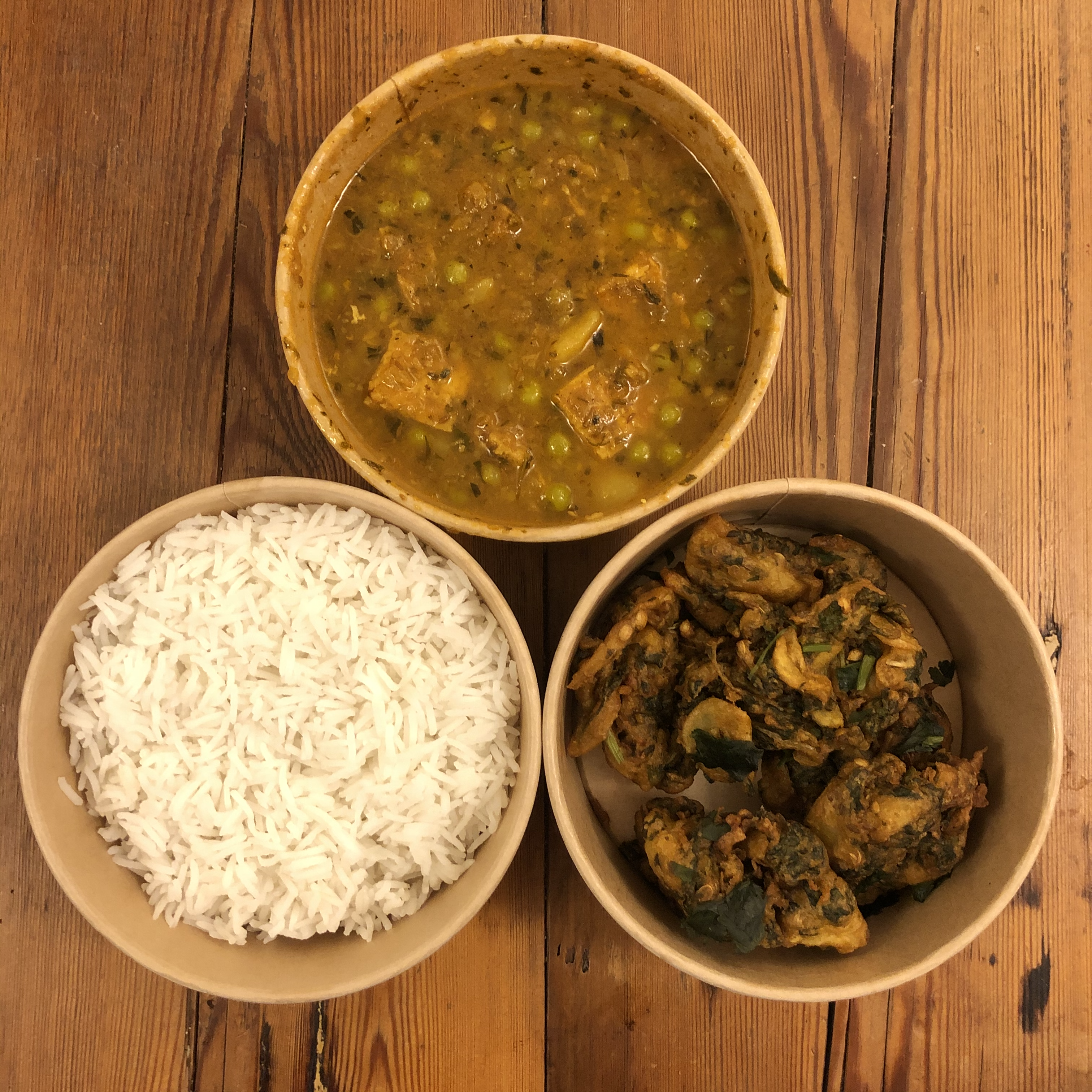 We’d ordered a couple more of the main meals to try, so enjoyed these the next evening with the three mini garlic and coriander naan. I still find it such a treat to have vegan naan bread, as they so often contain cow’s yoghurt. We used the naan to scoop up the Punjabi Kadhi curry, a potato and onion curry with a thick sauce made with gram flour. The tangy flavour profile was quite different to the curries we’d eaten the previous night, though still with lots of aromatic herbs and spices. The potatoes were nicely cooked and again didn’t seem to suffer from being microwaved. Alongside this, we tucked into the matar (pea) and tofu ‘paneer’ curry, which was the one I was looking forward to most. The dish was a bit spicier than the others, and the tofu had absorbed lots of flavour from the time marinating in that delicious sauce. I felt the peas could’ve been cooked slightly less, but they added an element of sweetness and overall I would be very happy to eat bowls and bowls of this.