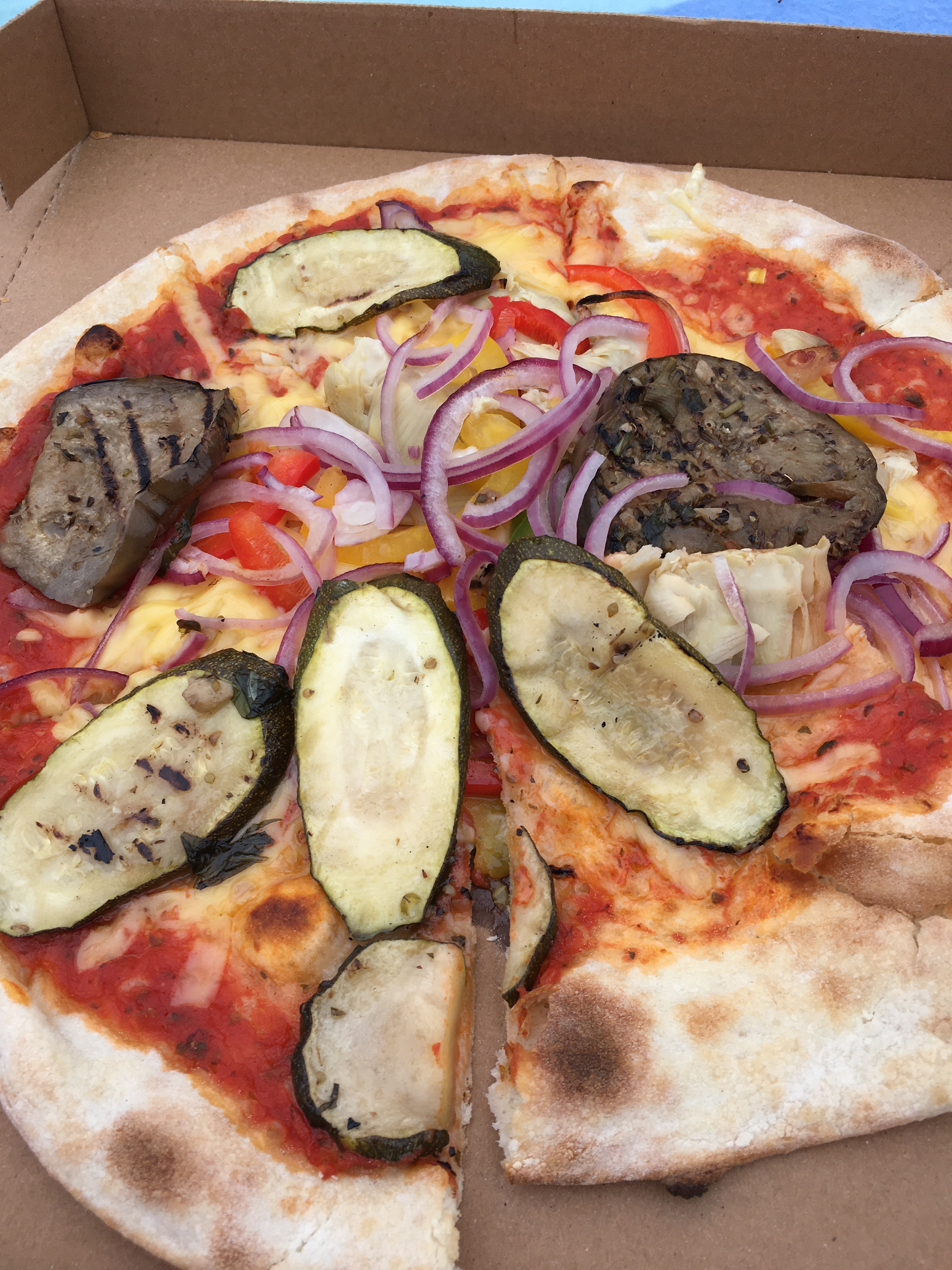 There is only one veggie pizza on the menu that’s vegan friendly (although you can surely make endless topping combinations of your own imagination), so I went with that one to make things easy. Plus, these particular veggies are some of my favourites. Being cooked in the pizza oven for a relatively short period of time, they weren’t overcooked at all which prevented the pizza from going soggy. The aubergine was melt-in-the-mouth and along with the soft, slightly charred courgette, it made for a really comforting eating experience. The freshness of the artichokes complemented sweet bell peppers, then you had the sharpness of a handful of not-quite-raw red onions. Artichokes are my absolute favourite on a pizza, and though I understand they’re expensive, that’s the only thing I wished I could’ve had more of.