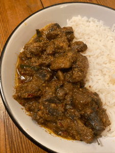 The second meal we enjoyed was a torn mushroom rendang. We boiled some basmati rice and heated the curry through on the hob towards the end of the rice cooking. The first thing to say is that the rendang made the house smell incredible, honestly kind of like a restaurant. On tasting, it had just the right chilli kick for our palettes, not too spicy but the heat was definitely there. The coconutty sauce was very aromatic too, with plenty of lemongrass coming through. At the bottom of the bowl it was a bit oily, but I think that might be the nature of this particular curry. The mushrooms themselves had a nice meaty texture, and were a great replacement for the pulled beef that would often be found in a rendang. Another really warming bowl and the perfect meal for winter.