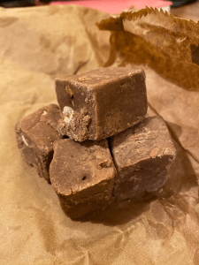 Lastly we were treated to dessert with the chocolate, hazelnut and rosemary tart. The almost chewy base was quite hard to get your fork into, making it a bit difficult to eat. I felt it wasn’t quite a biscuit, but definitely not a cake, so I’m not sure if the gluten-free element worked so well here. However, the velvety chocolate ganache topping was incredible. With the hint of rosemary running throughout, and the nutty aftertaste from the hazelnuts on top, all the flavours were so well balanced, and that element felt like a properly grown-up decadent pudding. In case that wasn’t enough, we also tried a handmade chocolate and hazelnut fudge. Incredibly sweet, tasting something like a solid nutella, this was a big hit with both myself and Jamie.