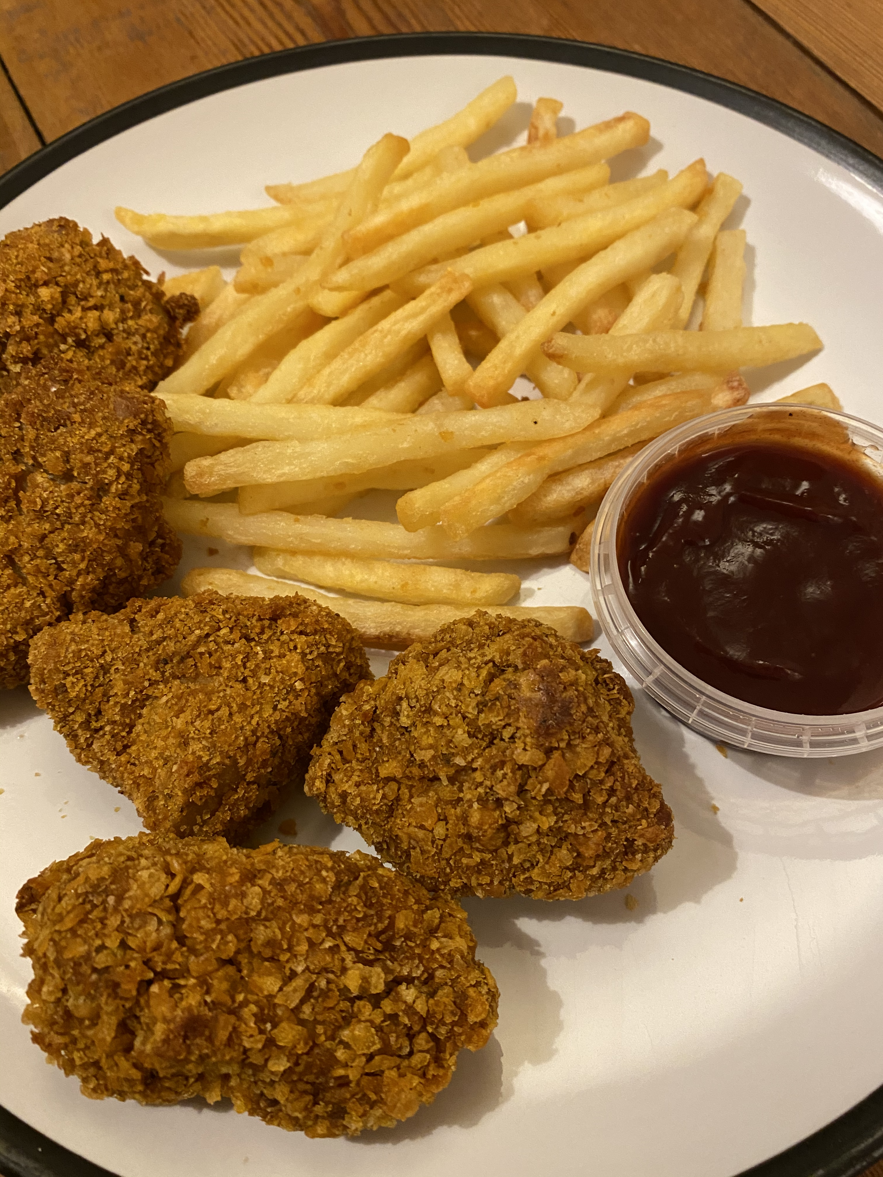 In the mixed bundle, alongside the meal boxes with the bites and fries, you also get two boxes of fillets, and two big separate bags of the bites. We cooked the original fillets to go with a roast dinner, which if you follow me on Instagram, you’ll have seen was a disaster as we realised at the last moment that we’d run out of gravy. However, I think the fillets would actually be really tasty smothered in gravy, which was the aim, and they worked well as an accompaniment to a roast. With the rest of the chic*n, we’ll make sure we pair it with flavourful sauces and seasoning, and that way they’ll still be very much enjoyed.