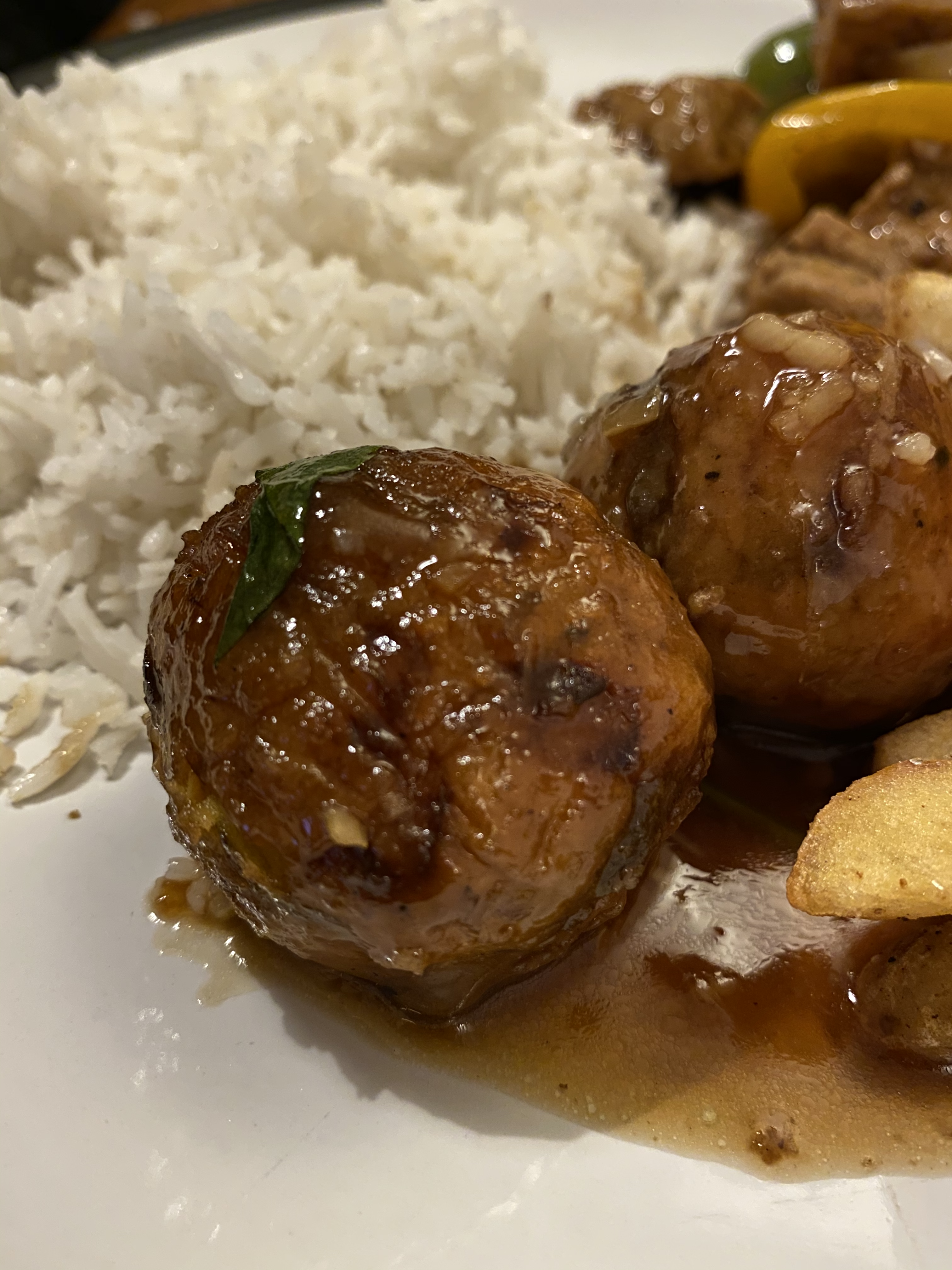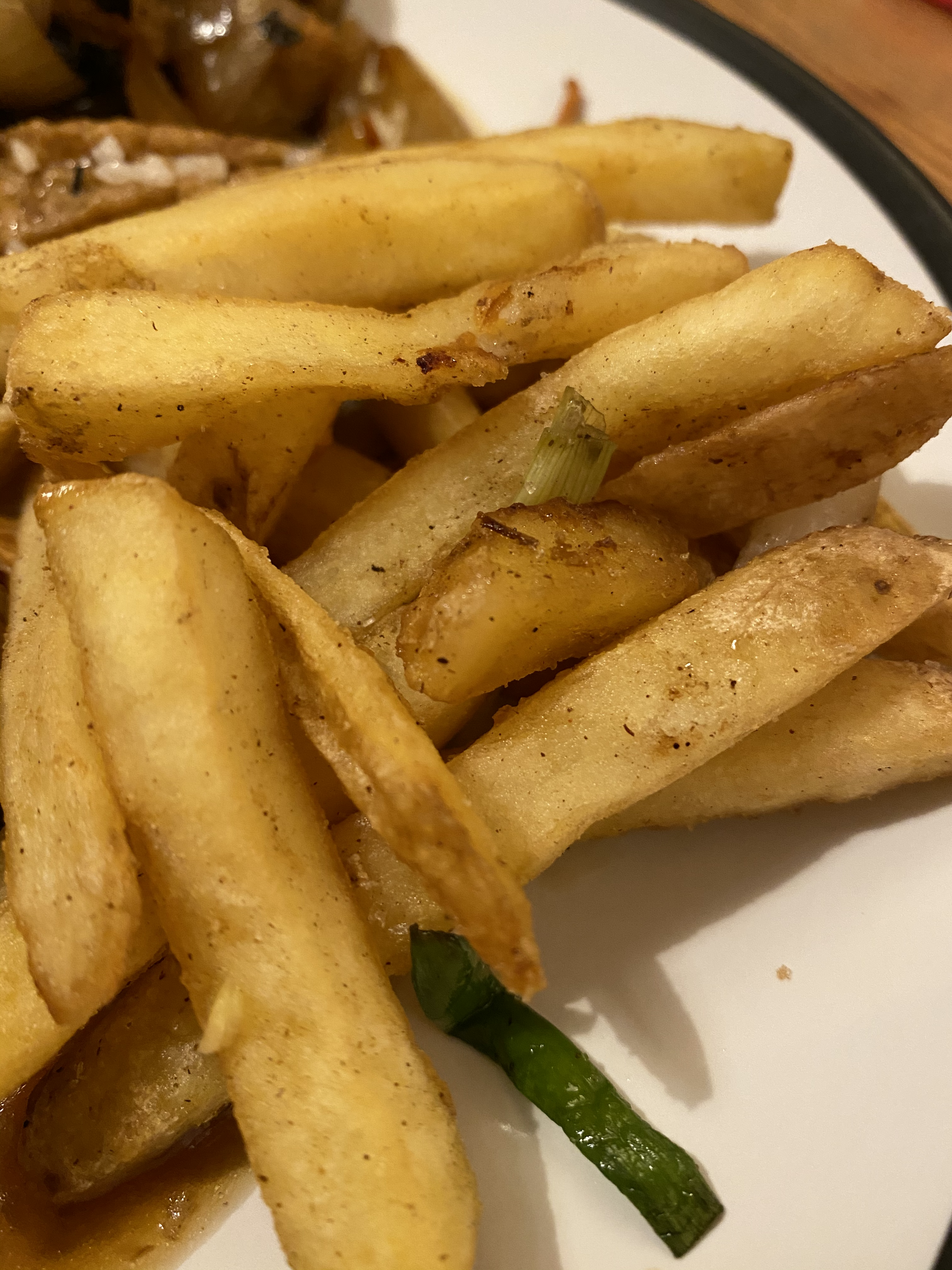 I also ordered the Manchurian vegetable balls, little veggie dumplings in gravy. They were very soft when you bit into them, with less texture than a falafel. Along with the thick gravy, which had lots of salt and ginger running through it, there was a sweetness to this dish that was also great paired with the rice. Because we love carbs, we’d also ordered a side of salt and pepper chips. With a sprinkling of five spice, spring onion and chilli, and just the right amount of salt, they were possibly my favourite part of the meal.