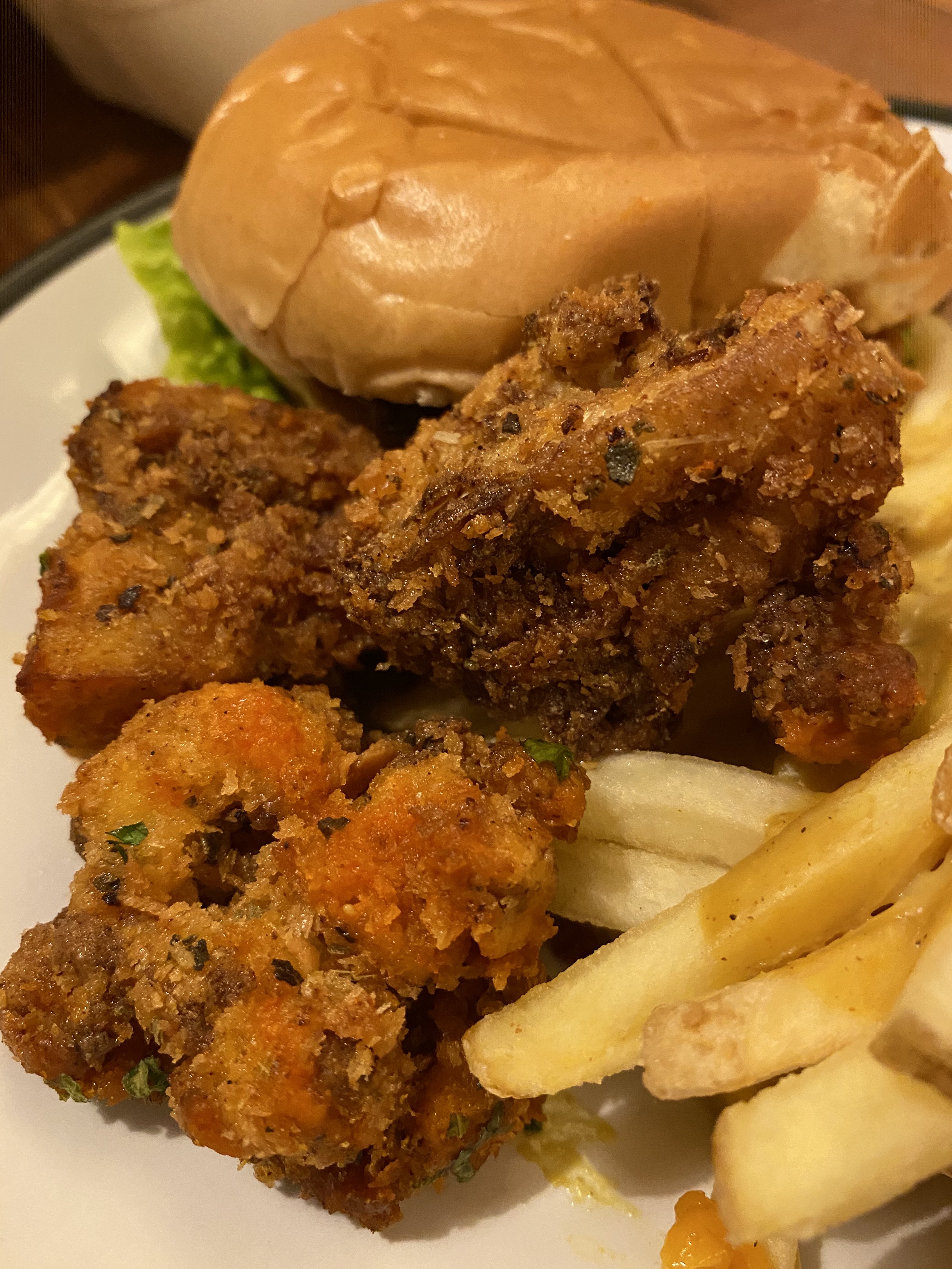 Lastly, we enjoyed the buffalo cauliflower as a side dish. I do think the sides are where the Happy Friday Kitchen menu really sings, and there are so many awesome options on there, but for once we decided to order the right amount of food for two people, instead of going way overboard, so opted for just the one extra side. The cauliflower florets are breaded and deep fried, giving the most delicious crisp coating, then covered in buffalo sauce. I could probably eat a big bowl of these as a movie snack, I just love to eat cauliflower cooked this way. The blue cheese style sauce was absolutely not for me – might be because I always hated blue cheese though so definitely don’t let that put you off.