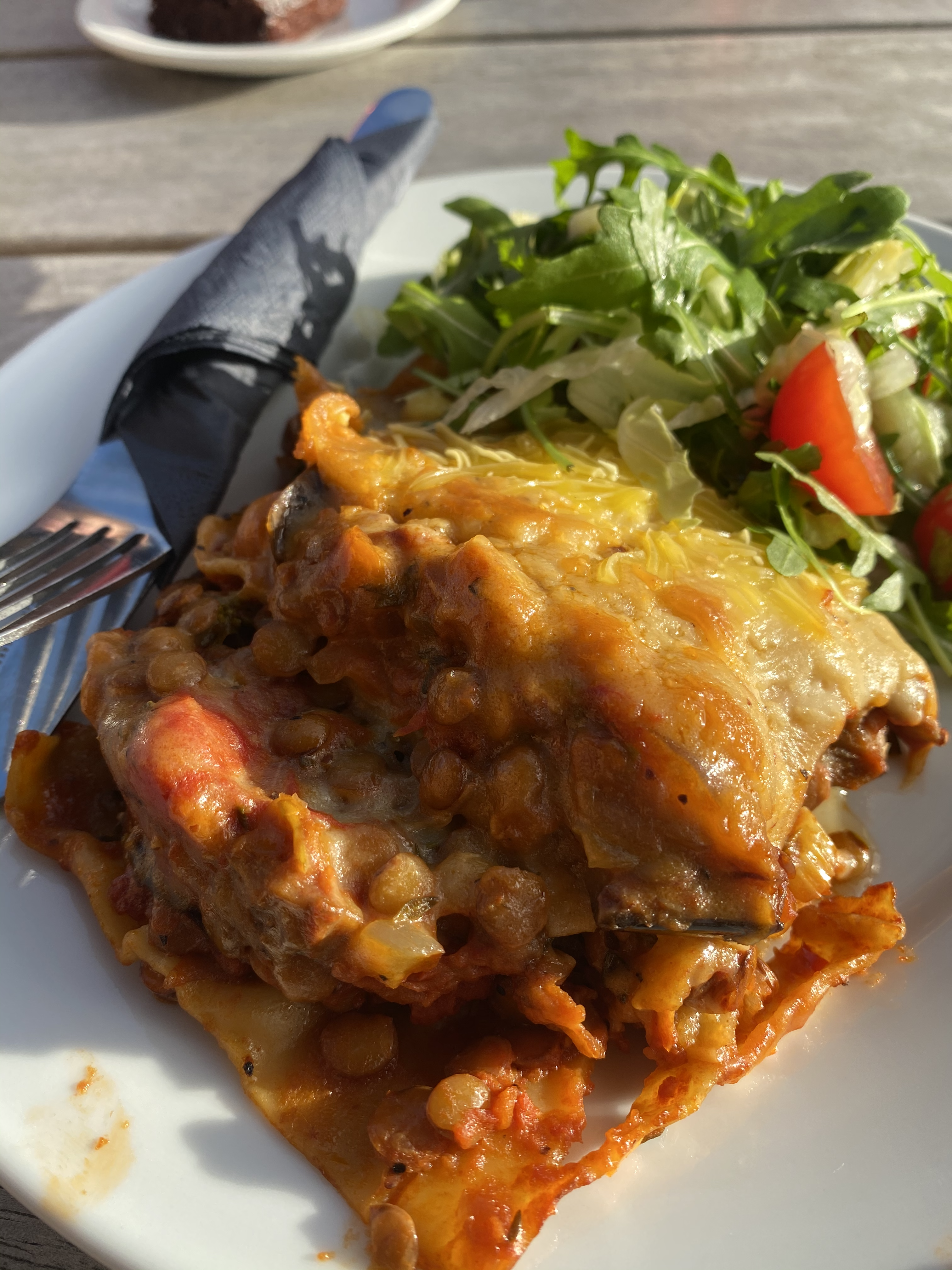 I ordered the lentil and roasted aubergine vegan lasagne, served with a side salad, which sounded like a steal for £6. The rest of my group turned their noses up at it because they don’t like aubergine, but when I put my meal down on the table they all conceded it ‘looks quite nice actually’ and definitely had a little bit of food envy. I was really impressed with how it was cooked, with the creamy sauce melting into the tomato one, filled with soft and flavourful veggies. The portion size was perfect for a lunch, and although a lasagne is fairly decadent, there were still a good few of your five a day on the plate. I really enjoyed it, and if I still worked on the business park I know I’d be going back to my desk feeling very satisfied.