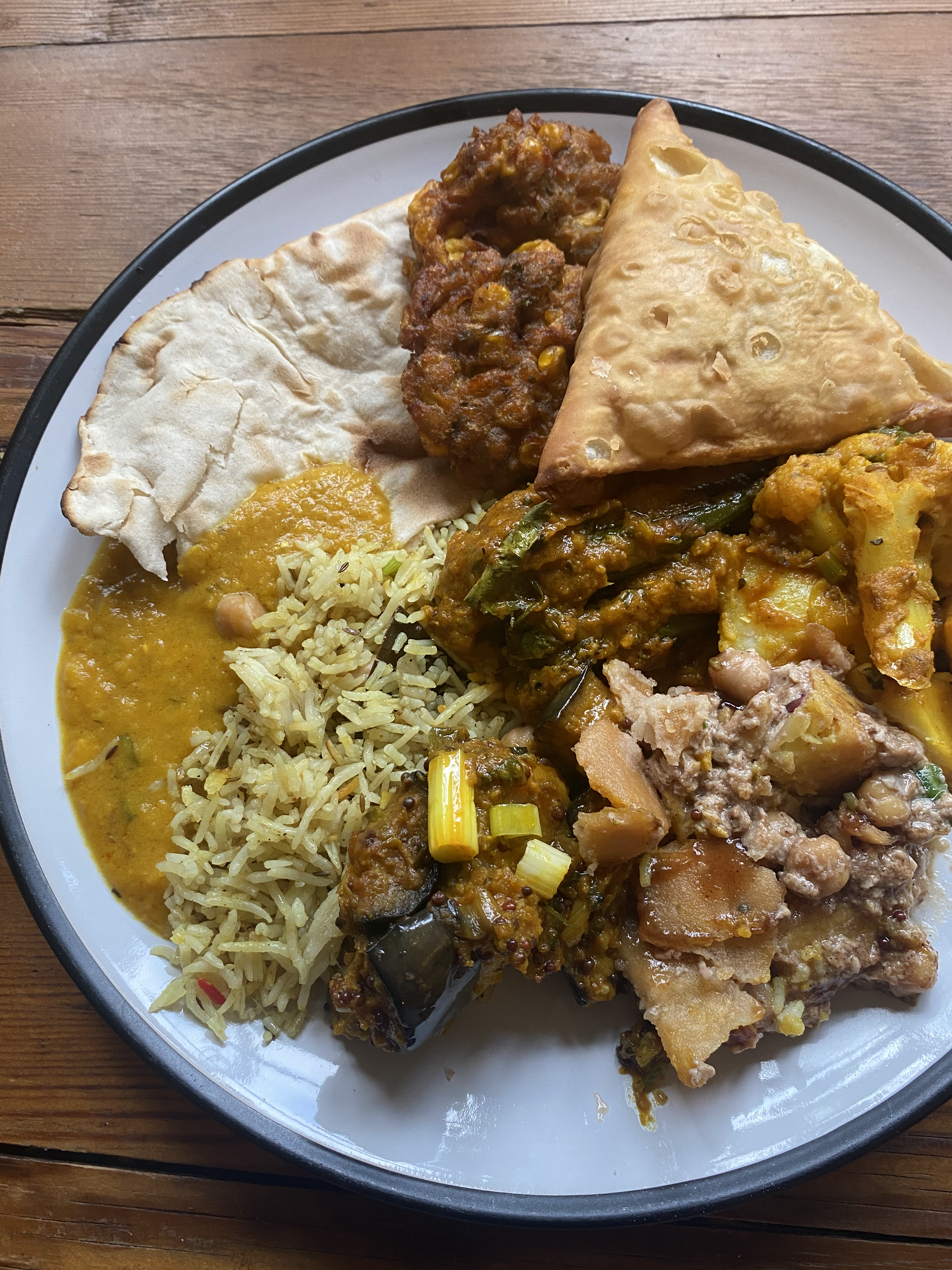 On the side we had a large samosa and a bag of sweetcorn fritters. The samosa was made with nicely crisp pastry and packed full of filling, but watch out because it was super spicy! Unexpectedly so. But delicious none the same. The corn pakodas were another simple but tasty snack on the side, again nicely fried on the outside and soft and chewy in the middle. Throw some dip in there and I could happily get through a bag to myself in an evening.