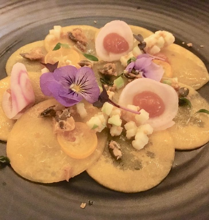 A last-minute tip off from a friend led me to learn that The Folly was launching a vegan tasting menu, the test run being last Sunday evening. I wouldn’t ordinarily be looking out for vegan events at The Folly as they have nothing vegan-friendly on their regular dining menu at all, but a look at the tasting menu suggested this had the makings of a really great experience…