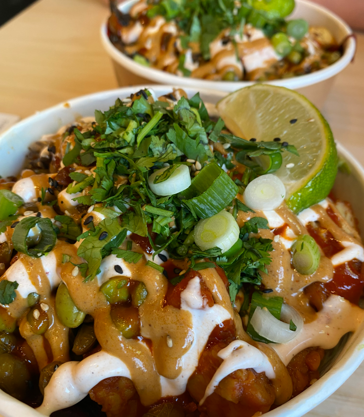 We tried the Spicy Peanut Tofu bowl and the Korean Tempeh bowl, both being made with the same base of rice, fresh veggies, and Shichimi spice. Every mouthful gave you something slightly different, but each packed with flavour.